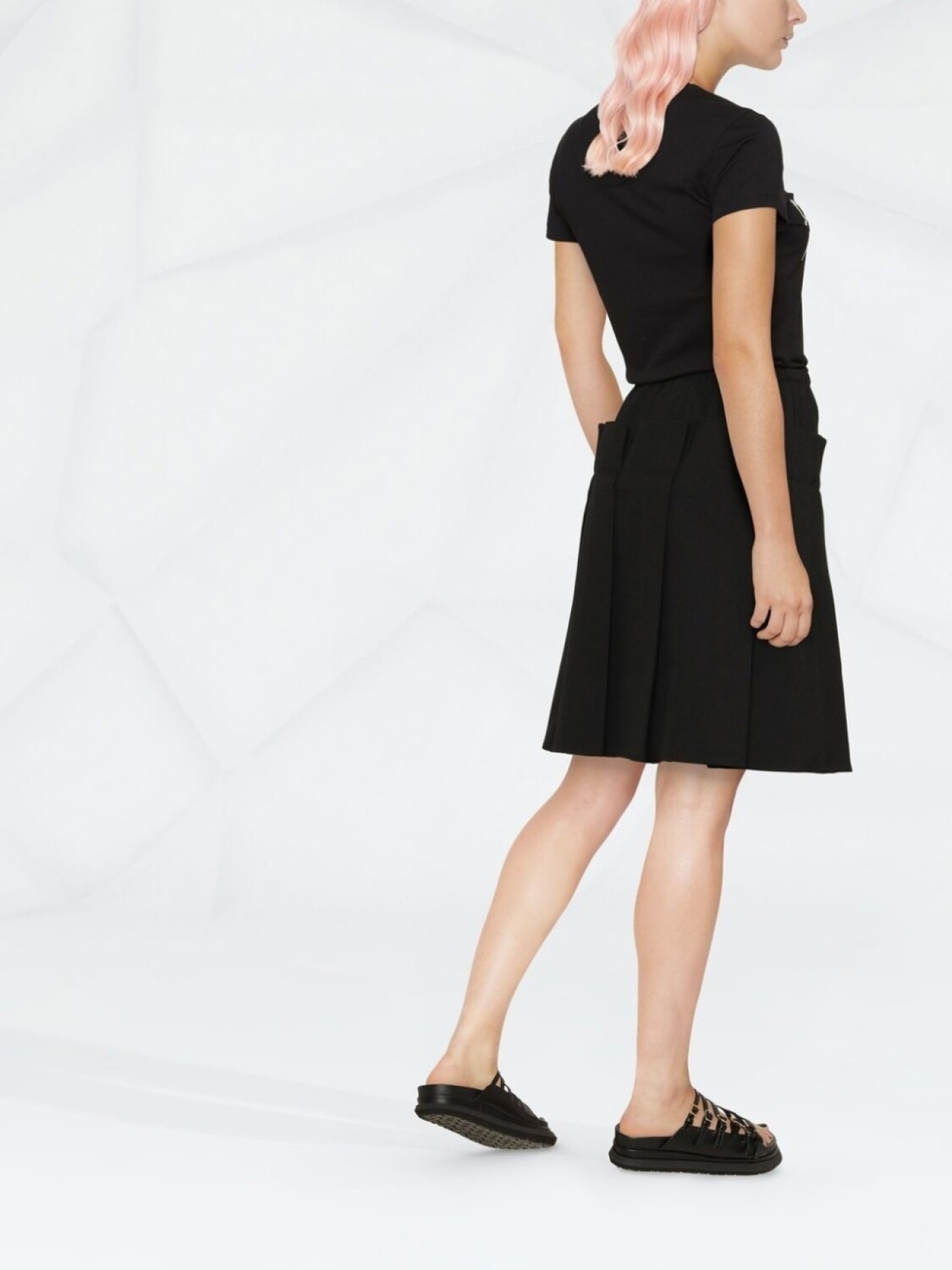 Черный, хлопок, украшения из горного хрусталя, принт с цитатой в кавычках, короткие рукава, круглый вырез и прямой подол.