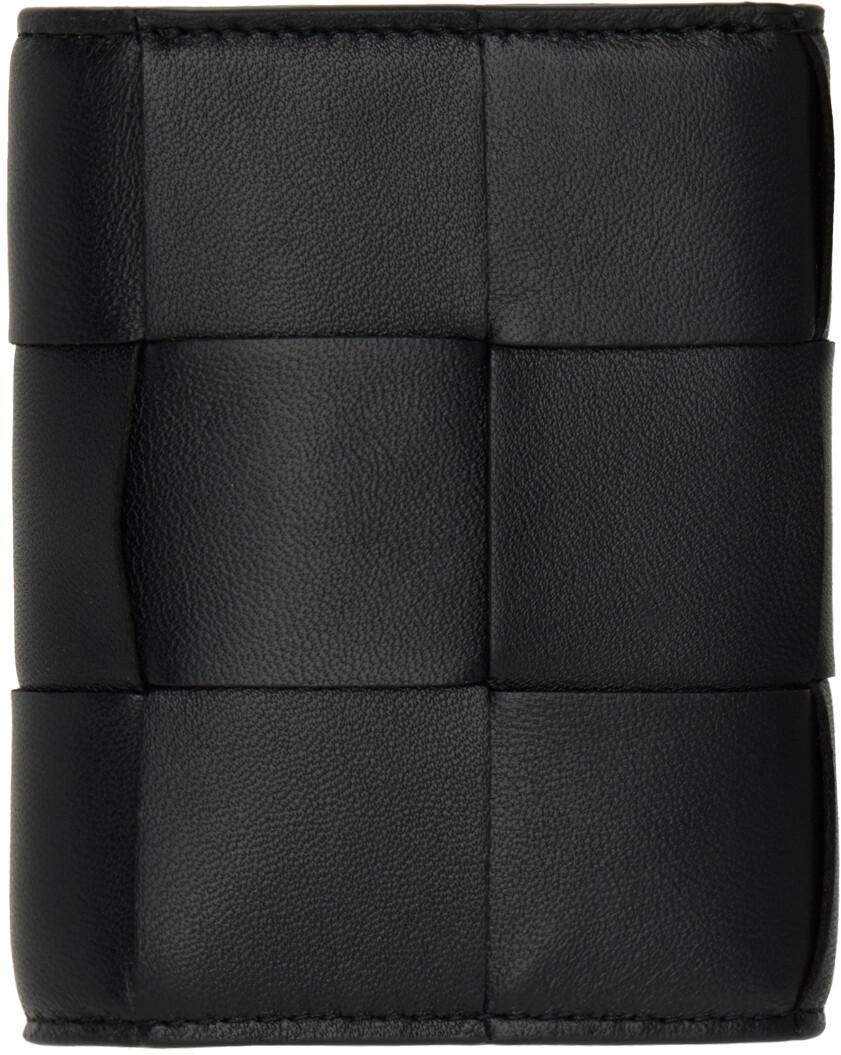 Черный бумажник из полированной овечьей кожи с плетением Intrecciato.