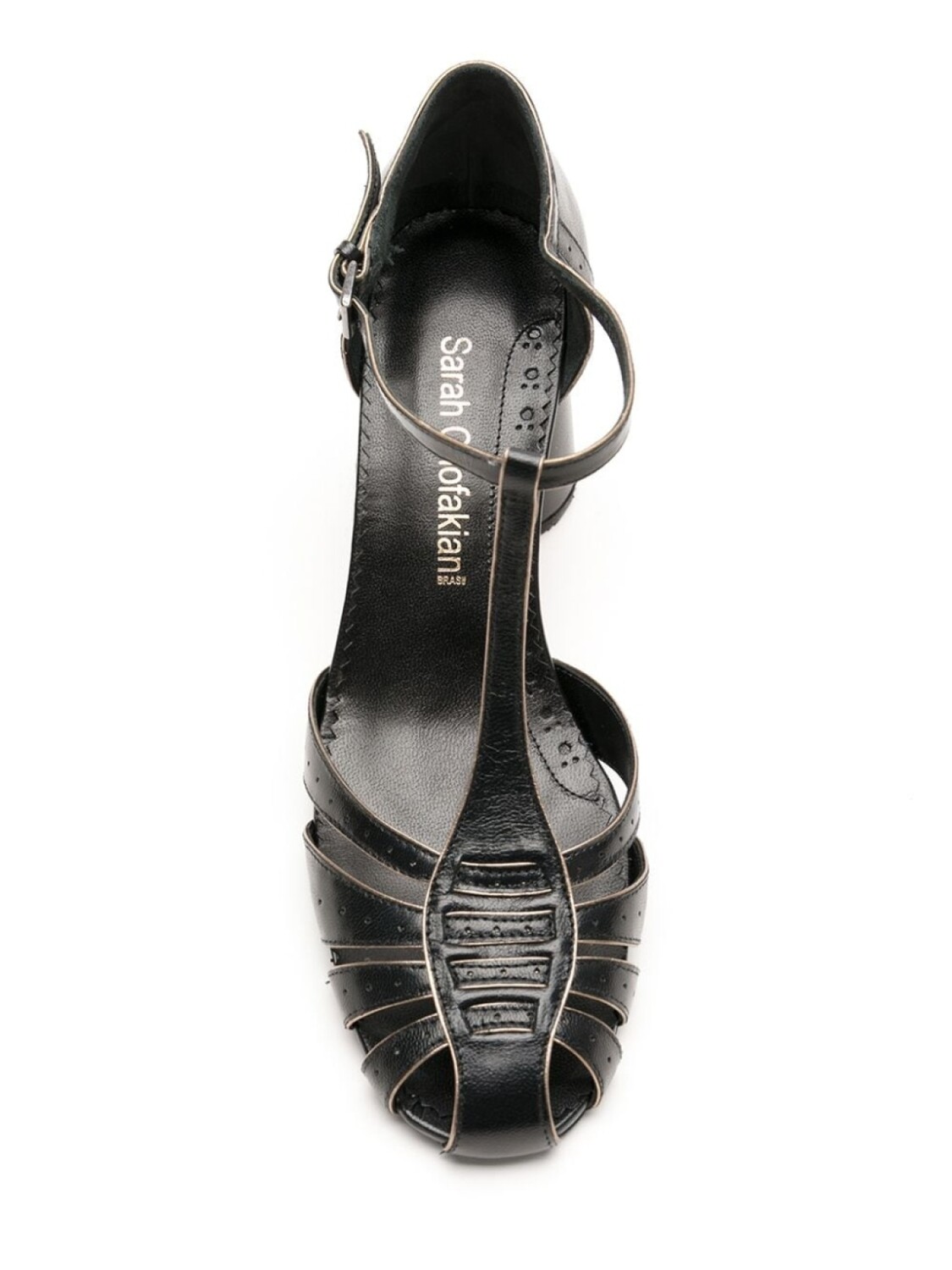 Туфли Thiri от Sarah Chofakian. Закругленный носок, дизайн с ремешками, завязка на щиколотке и массивный высокий каблук. Цвет: черный.