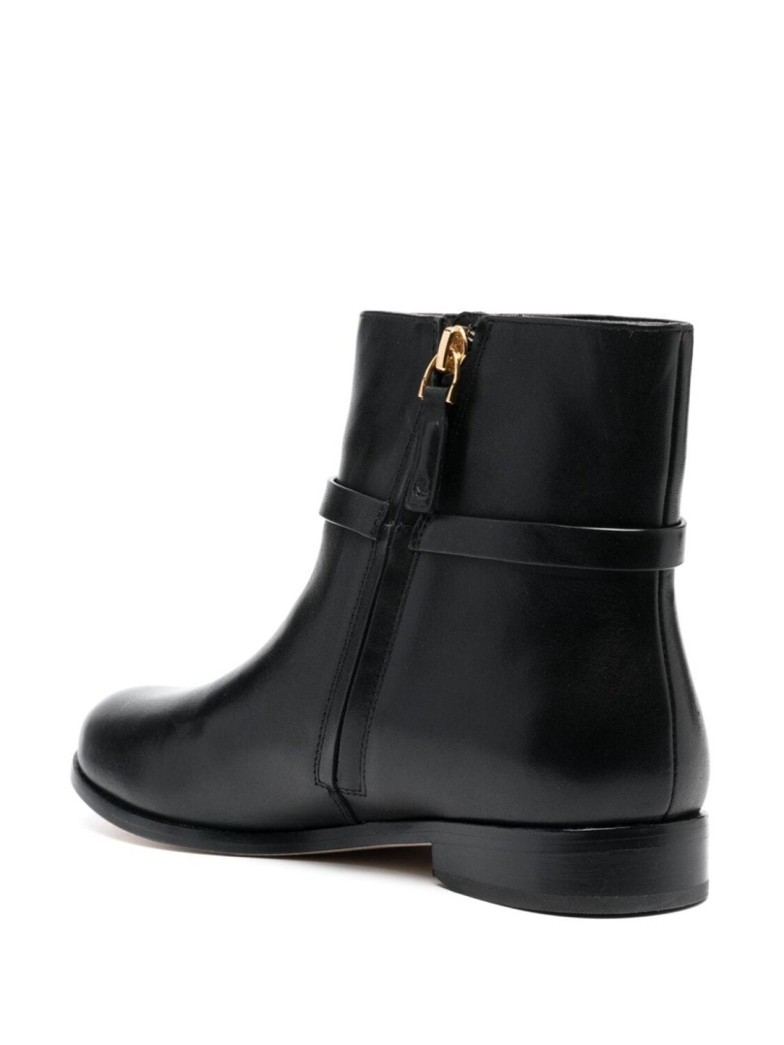 Черный, телячья кожа, кожаная стелька с логотипом, закругленный носок, застежки на молнии сбоку и низкий каблук.