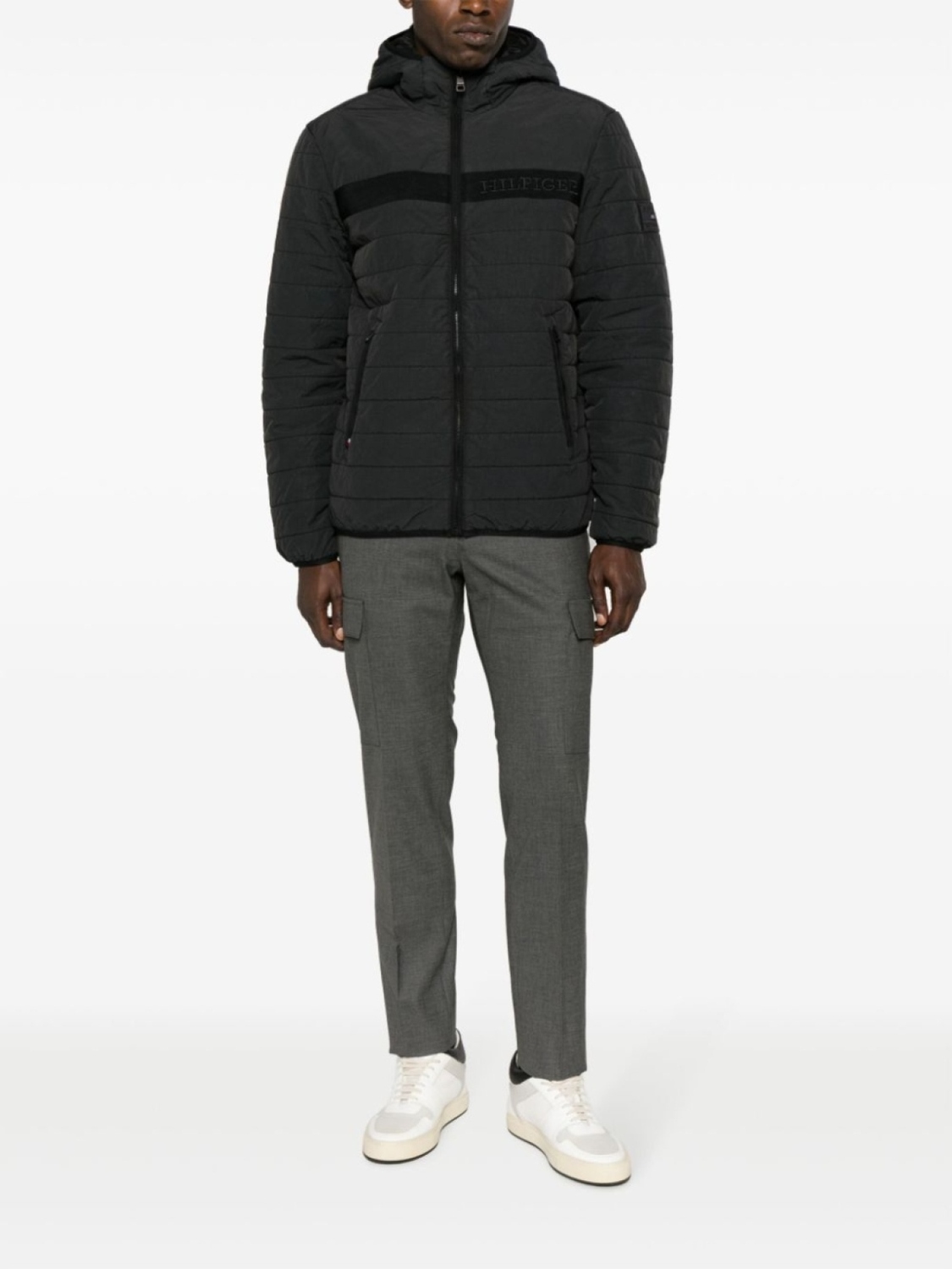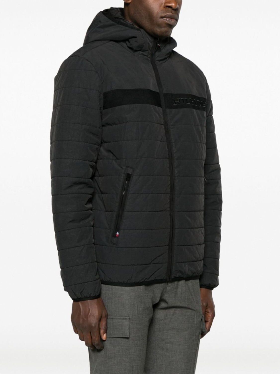 Tommy Hilfiger пуховик с капюшоном и вышитым логотипом, черный