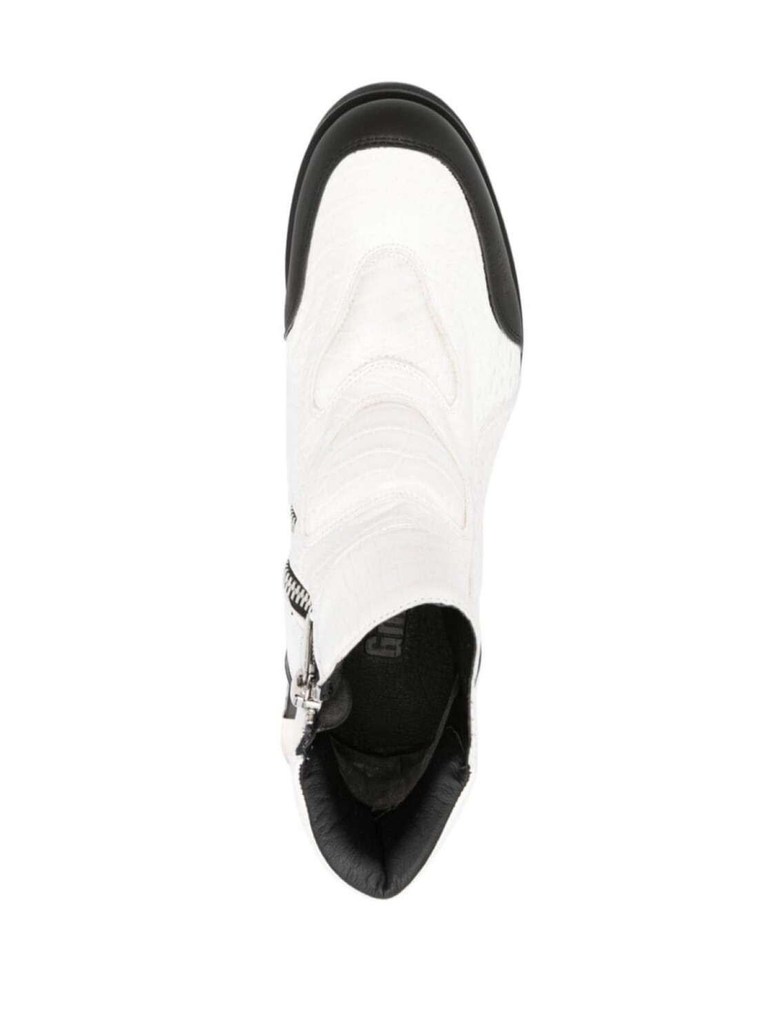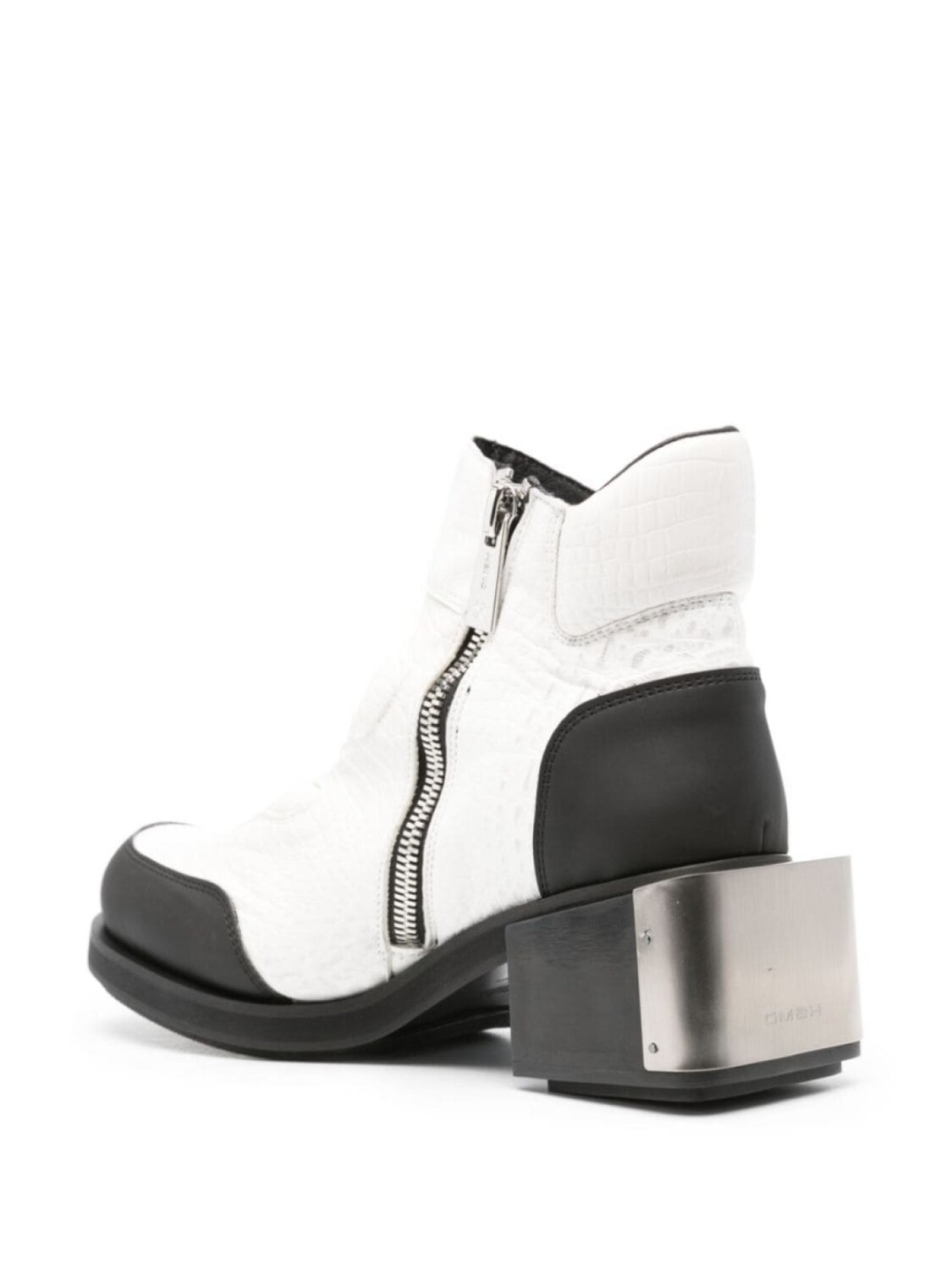 белый/черный, искусственная кожа, тиснение под кожу крокодила, дизайн со вставками, закругленный носок, резиновый носок, металлическая аппликация сзади, тисненый логотип сзади, уплотненная щиколотка, длина по щиколотку, стелька с логотипом, блочный каблук 70 мм, резиновая подошва, пуллер с логотипом, застежка на молнии сбоку, Мы сотрудничали с Good On You — независимым агентством, которое оценивает эффективность брендов с точки зрения их влияния на планету, людей и животных. Рейтинг по многим критериям был упрощен до пяти баллов. Чтобы попасть в категорию ответственных, крупным брендам нужно получить как минимум 4 балла из 5 («Хорошо»), а небольшим маркам — как минимум 3 из 5 («Достойное начало»)., Это товар из коллекции бренда, который появился на FARFETCH, получив оценку 3 из 5 («Достойное начало») от Good on You. Обратите внимание, что этот рейтинг — собственная оценка бренда и это не гарантирует, что данный продукт изготовлен из экологически чистых материалов., Узнать больше о том, какие товары получают отметку «Ответственный выбор», можно здесь.