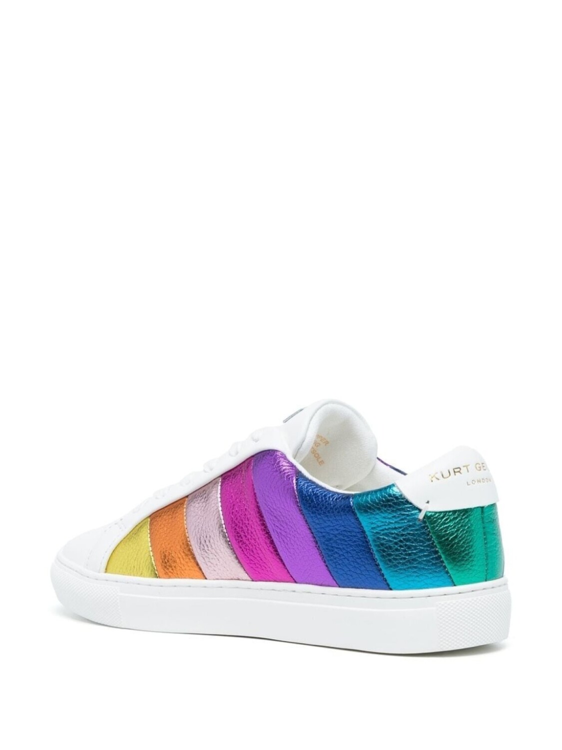 белый/разноцветный, кожа, узор с разноцветными полосками, закругленный носок, шнуровка спереди, тисненый логотип на язычке, стелька с логотипом, плоская резиновая подошва