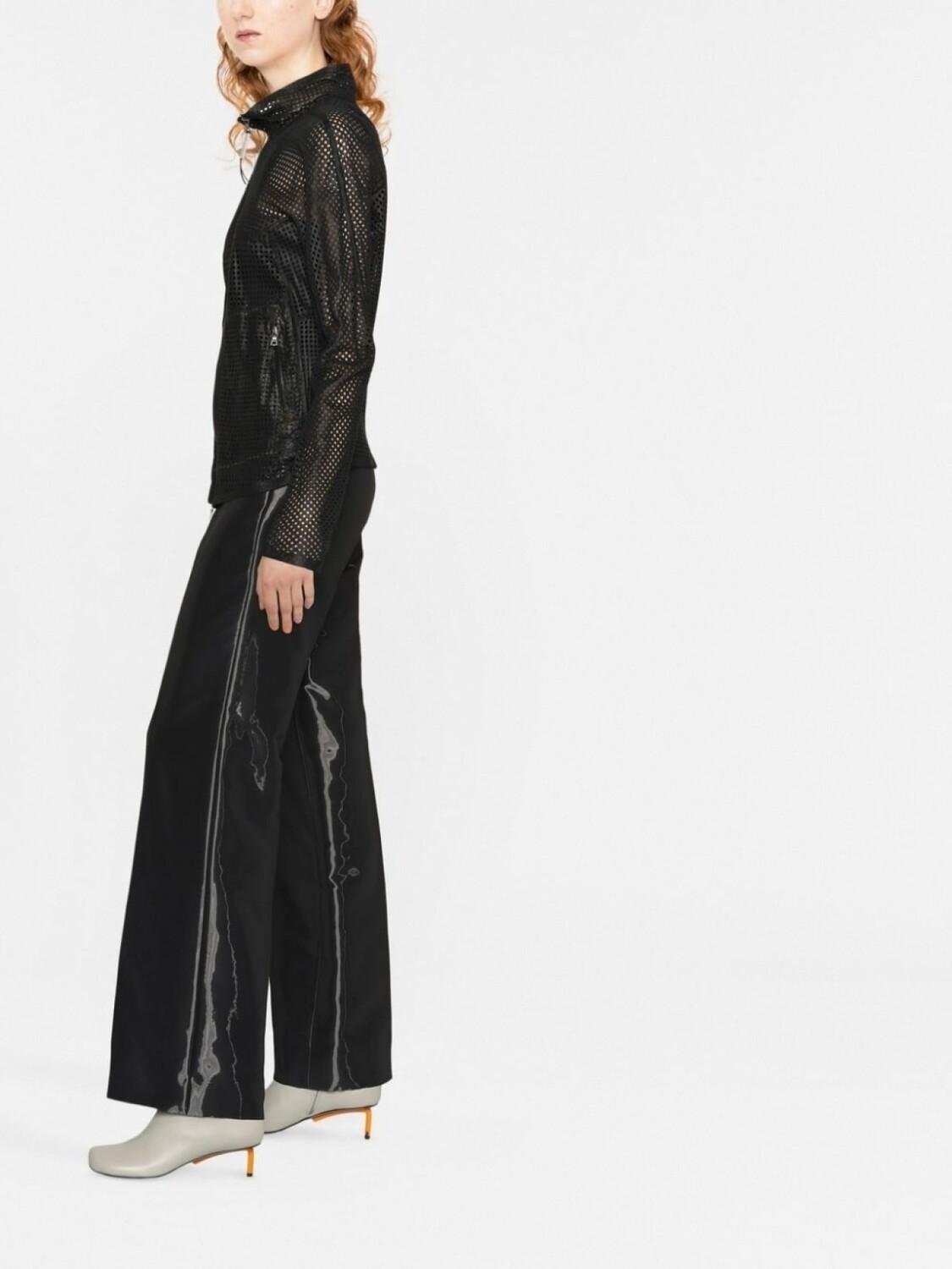 Черный, телячья кожа, сетка, полупрозрачное покрытие, круглый вырез, застежка на молнии спереди, длинные рукава и закругленный подол.