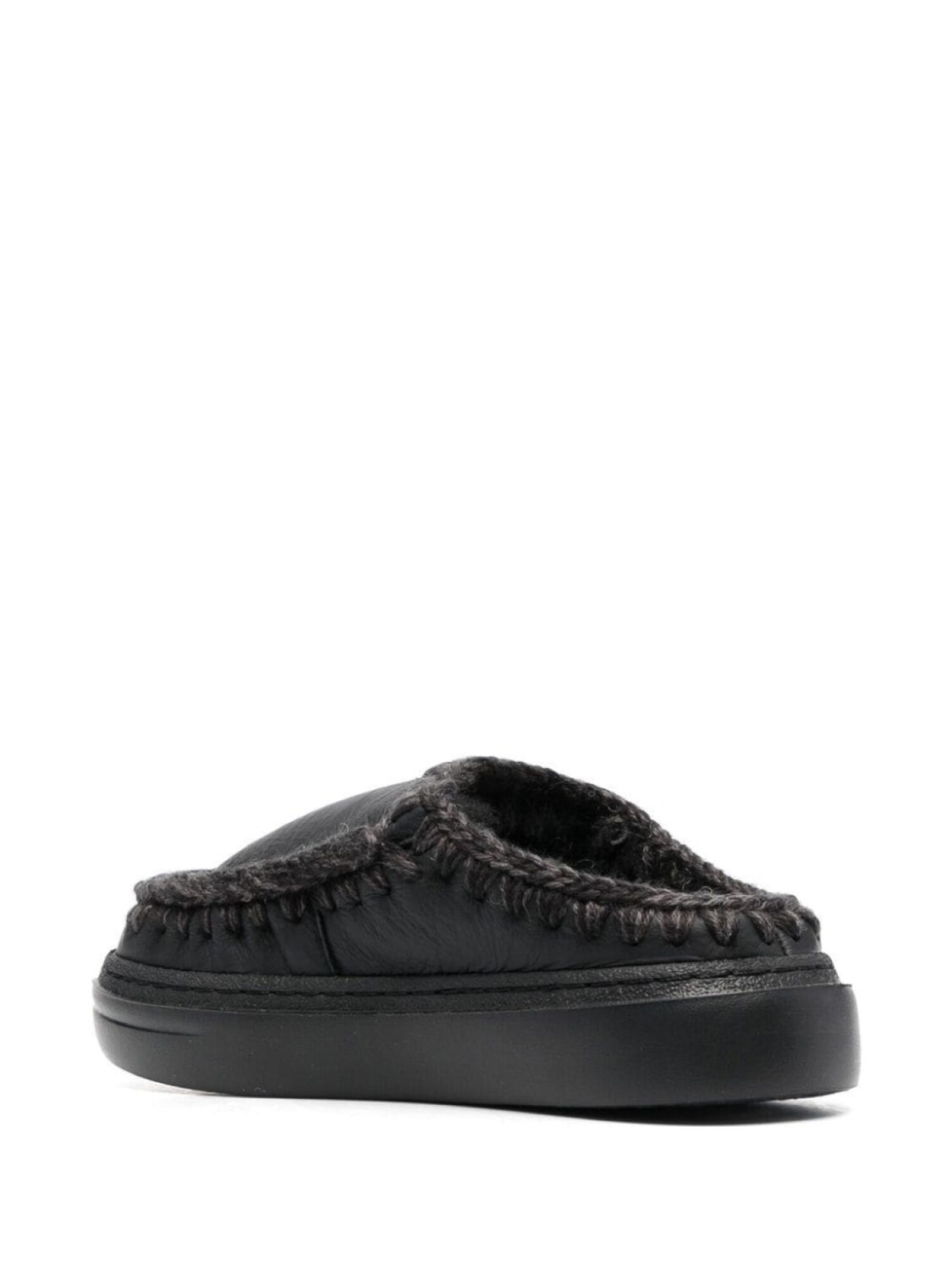 Черный, телячья кожа, подкладка из овечьей шерсти, декоративная строчка, тисненый логотип сбоку, закругленный носок, модель без застежки и массивная резиновая подошва.