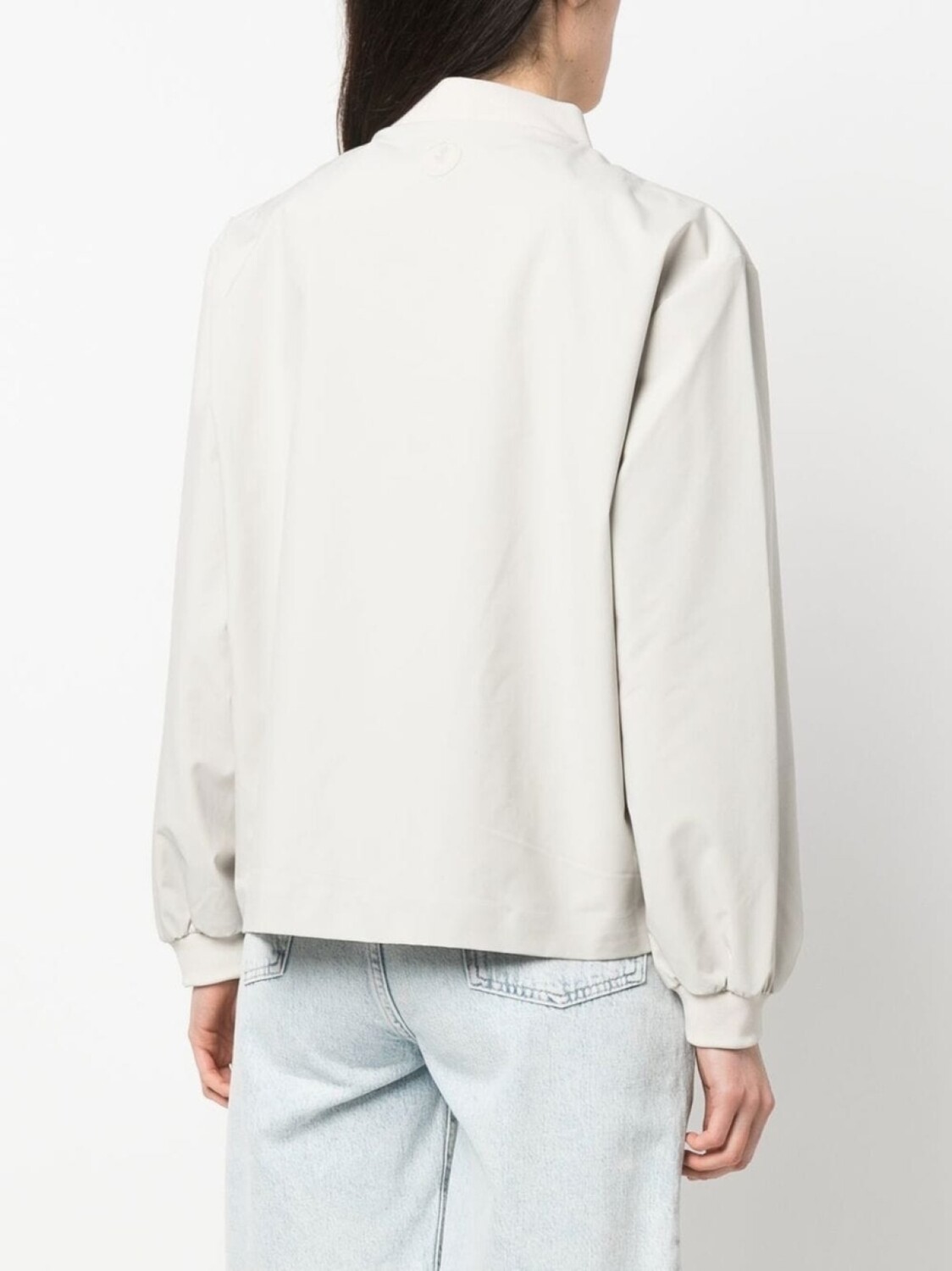 Подробнее о товаре: Кремовый, переработанный полиэстер, принт с логотипом сзади, бейсбольный воротник, застежка на пуговицах спереди, длинные рукава, эластичные манжеты, карманы на двух пуговицах и прямой подол. Этот товар как минимум на 50% состоит из переработанных или повторно использованных материалов. Узнать больше о том, какие товары получают отметку «Ответственный выбор», можно из материала «Как мы оцениваем экологичность и этичность».
