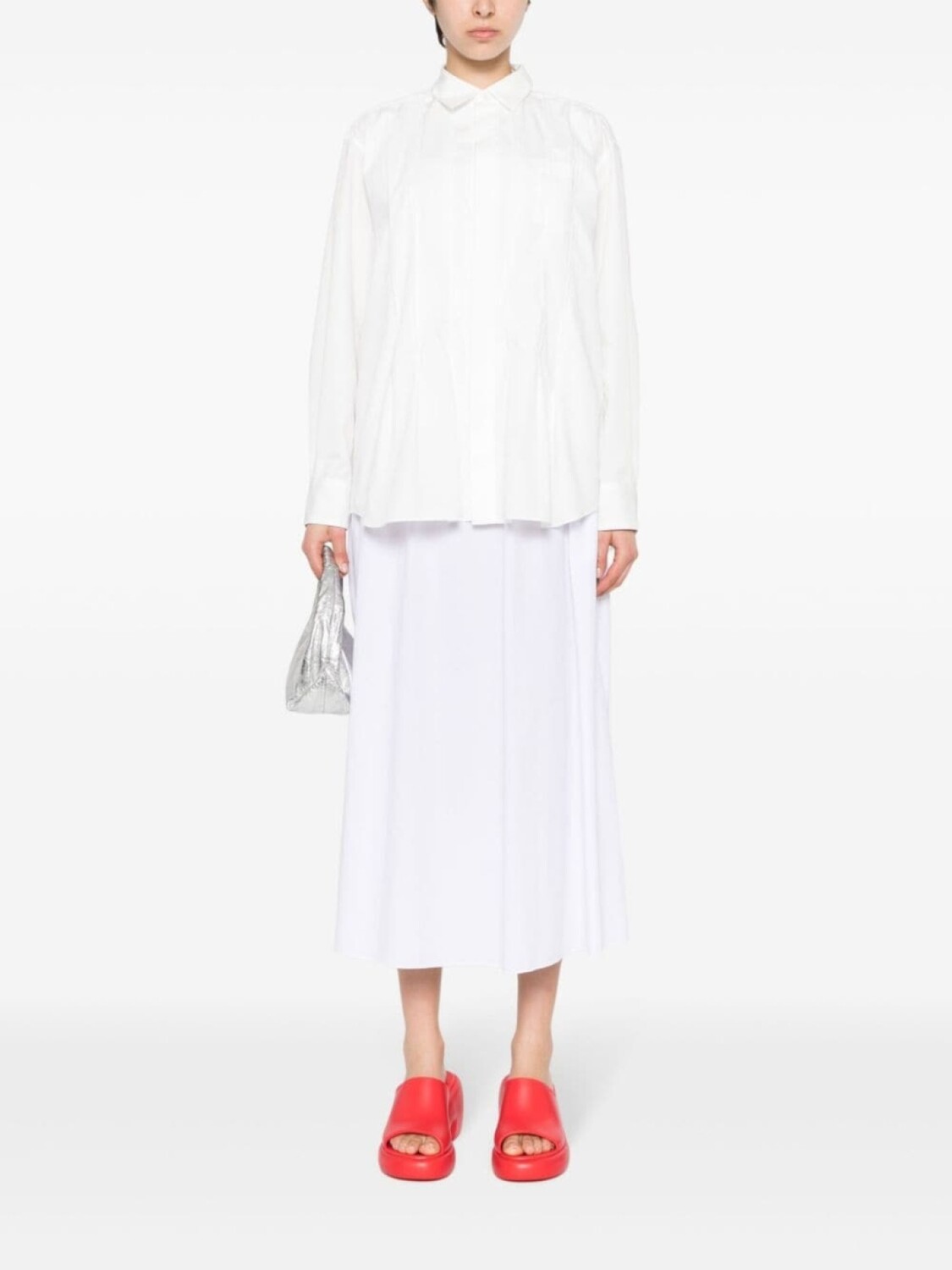 sacai поплиновая рубашка со складками, белый