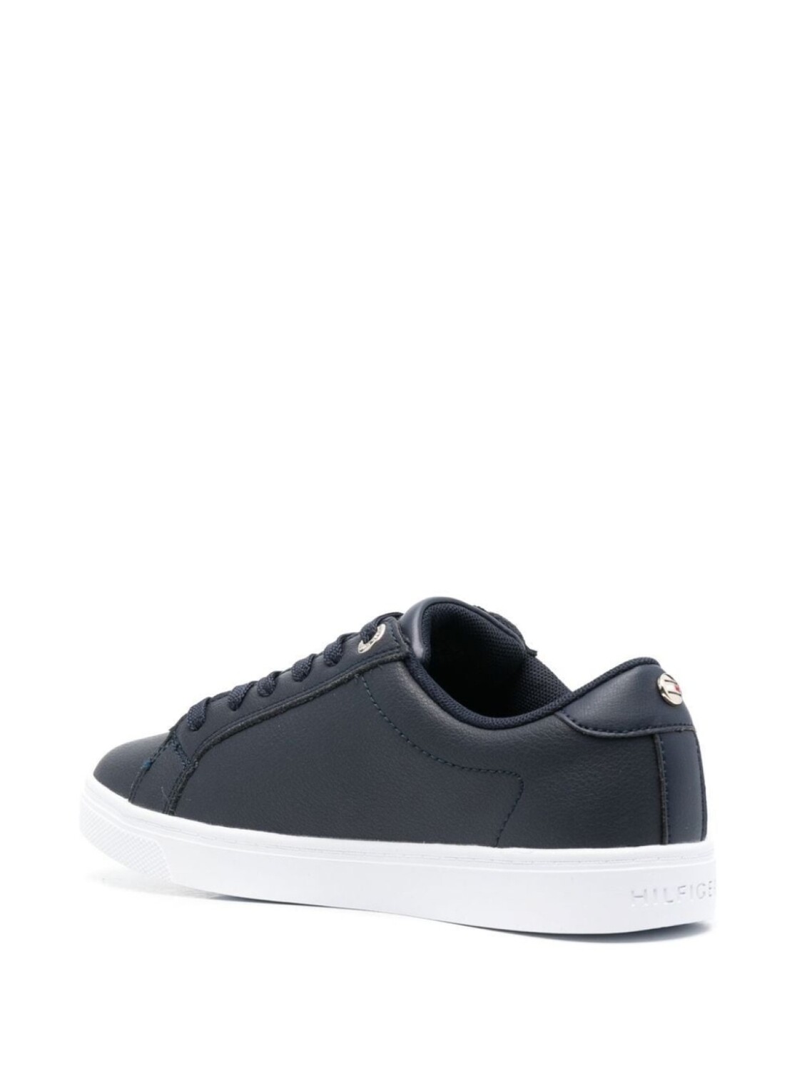 Темно-синий, белый, красный, телячья кожа, полоска сбоку, язычок с логотипом, задник с логотипом, шнуровка спереди, шнуровка спереди, логотип на стельке, закругленный носок и плоская резиновая подошва.