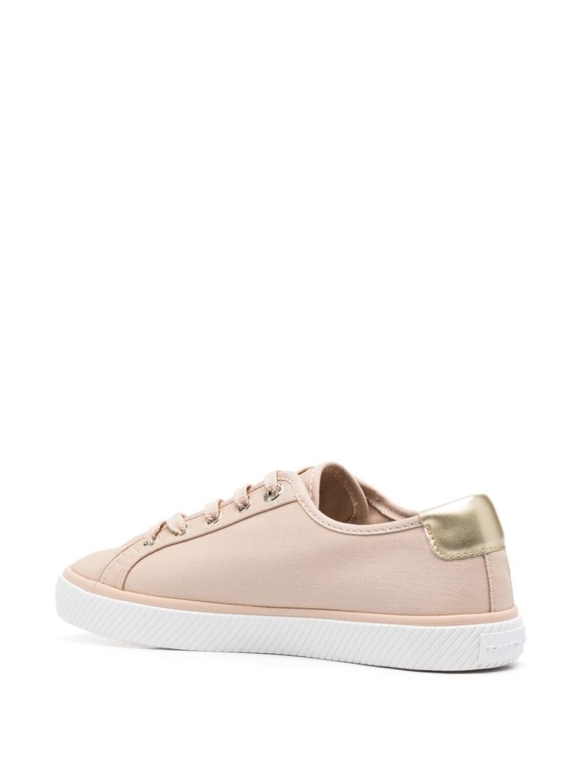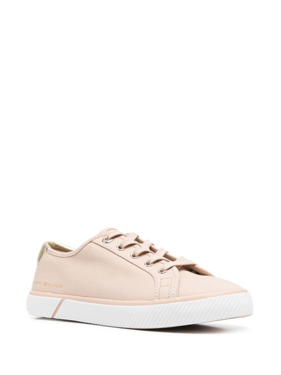 Розовый, парусина, закругленный носок, шнуровка спереди, контрастный задник и плоская резиновая подошва.