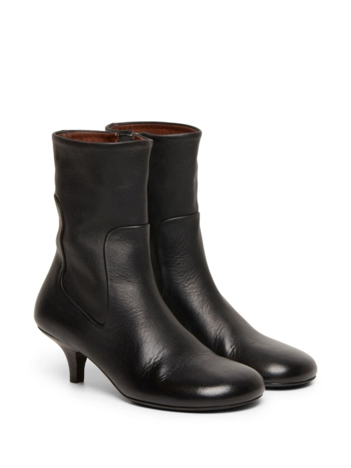 Коричневый, кожа, застежка на молнии сбоку, закругленный носок, стелька с логотипом и каблук-рюмка.