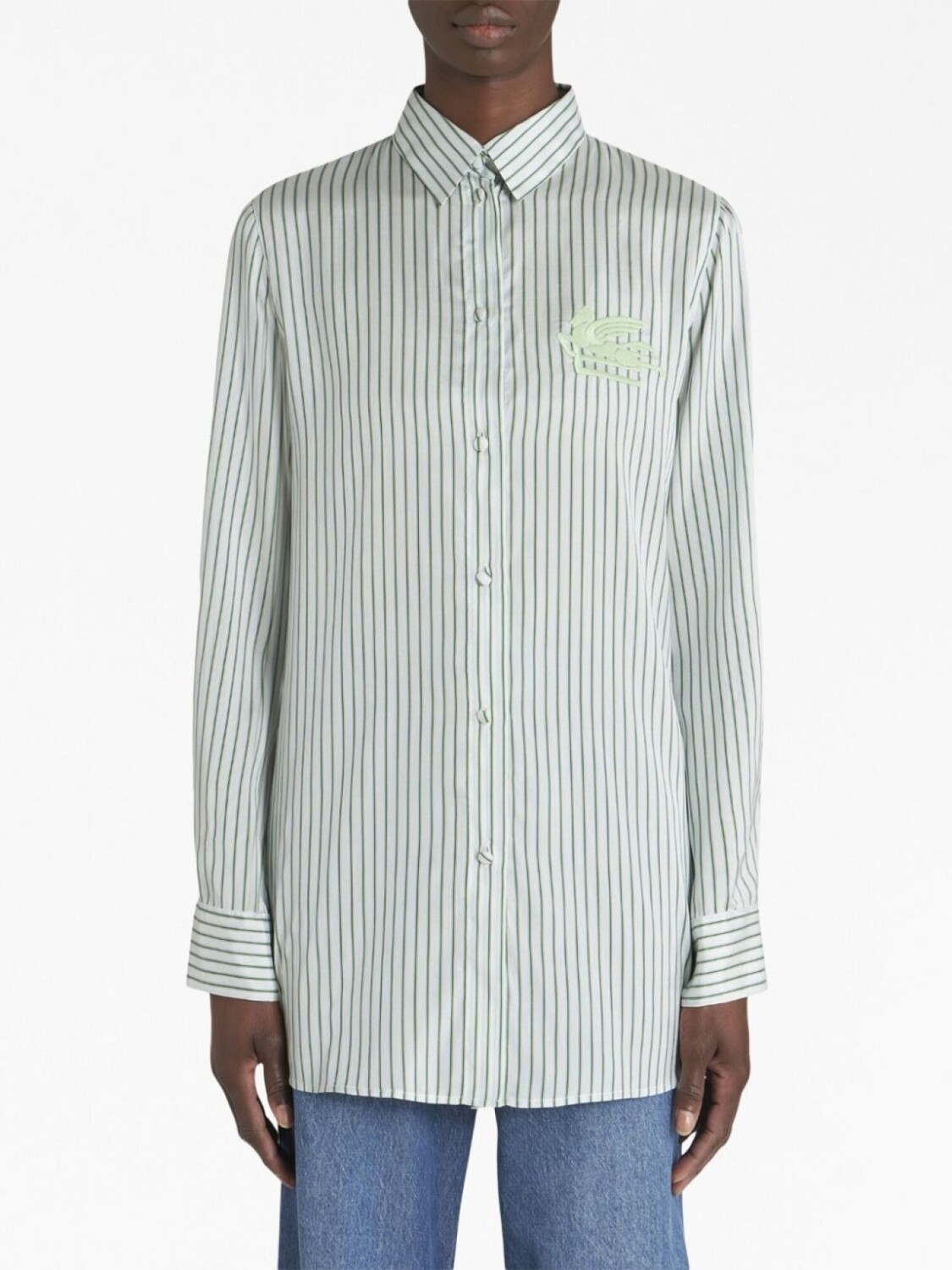 ETRO полосатая рубашка с вышитым логотипом, зеленый