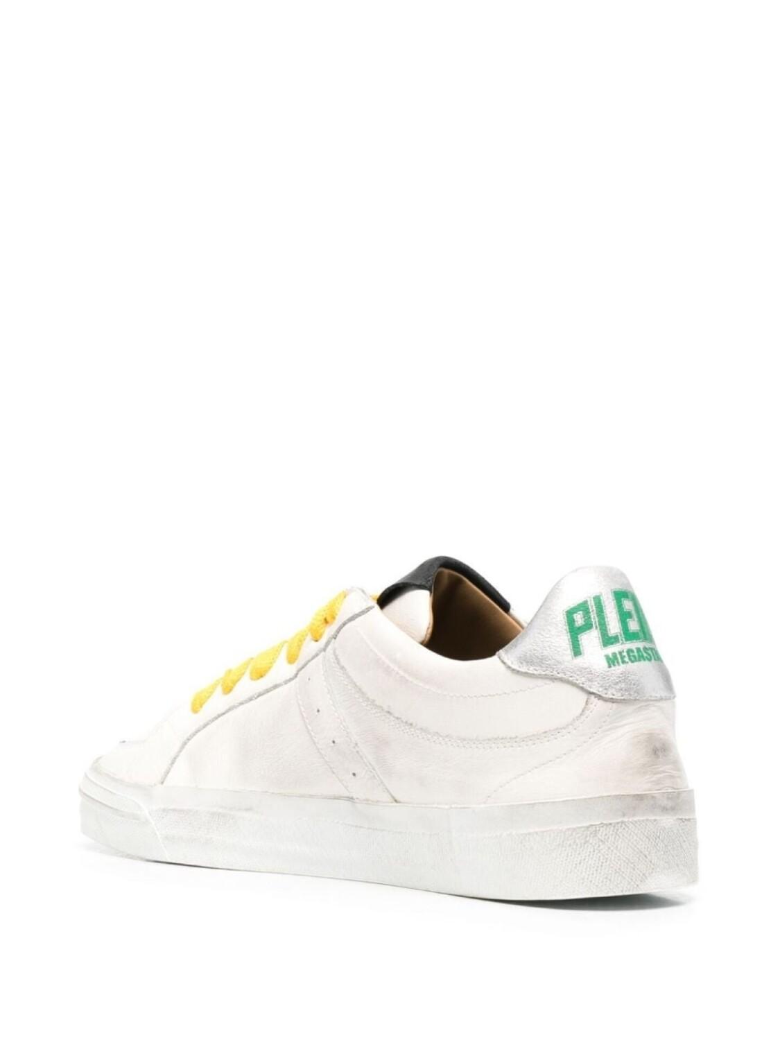 Белый/разноцветный, телячья кожа, искусственно состаренное покрытие, логотип сбоку, нашивка с логотипом на язычке, задник с логотипом, закругленный носок, шнуровка спереди, стелька с логотипом и плоская резиновая подошва.