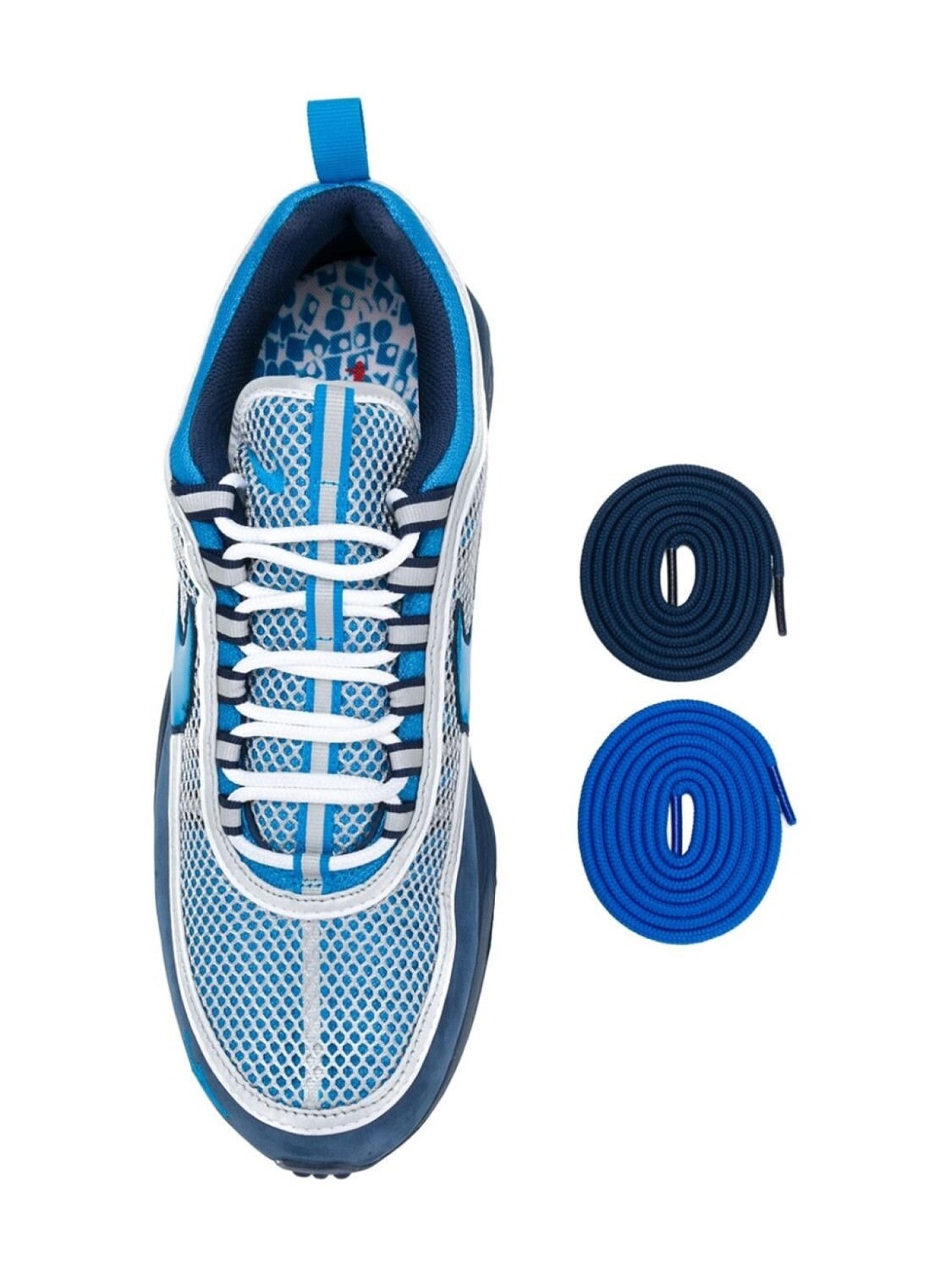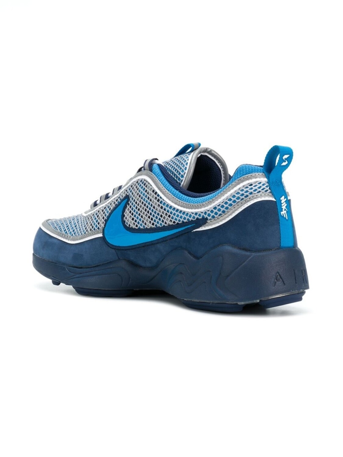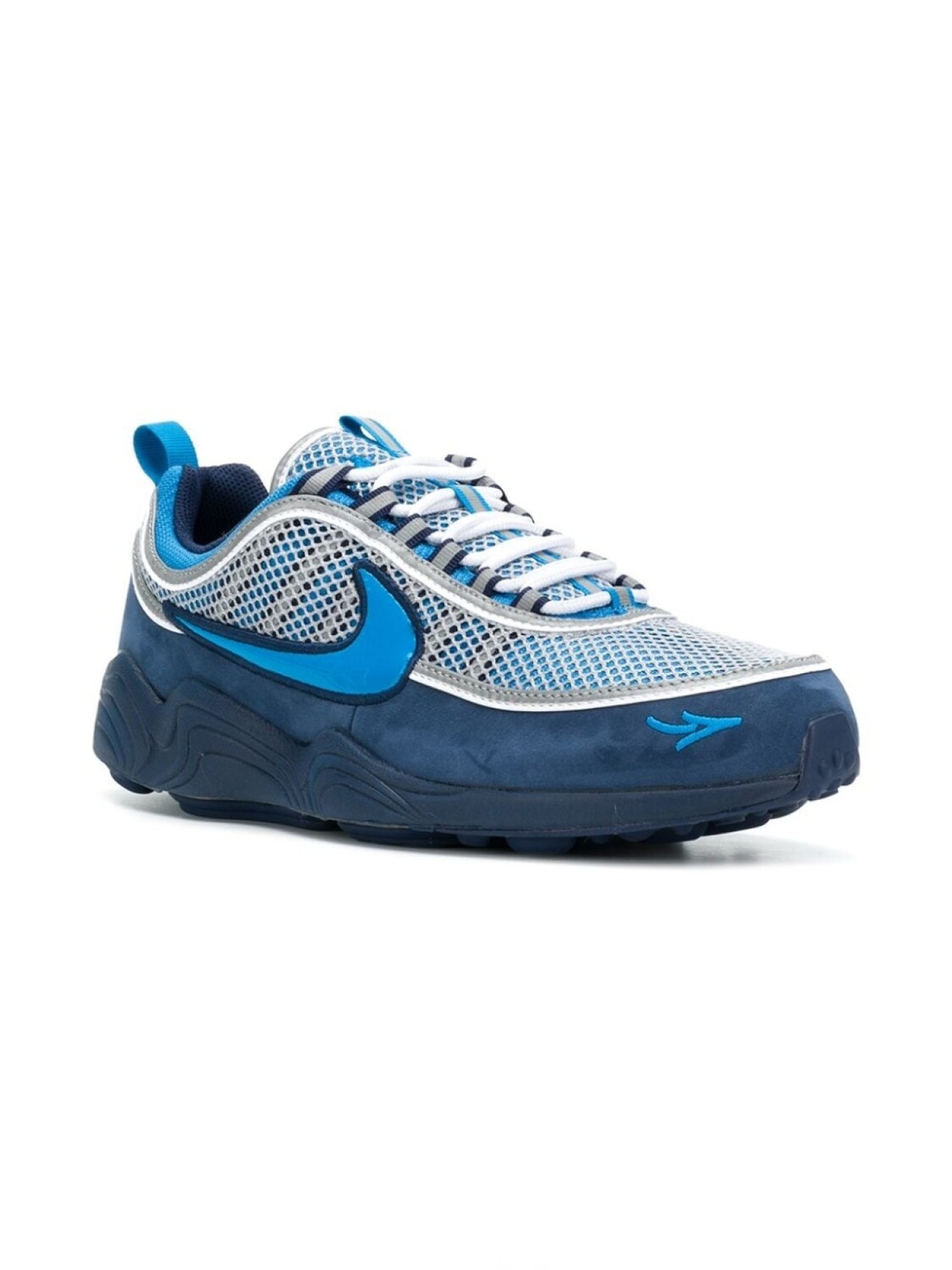 Синие кроссовки 'Spiridon' от Nike(Найк). Закругленный носок, шнуровка спереди, низкий каблук.