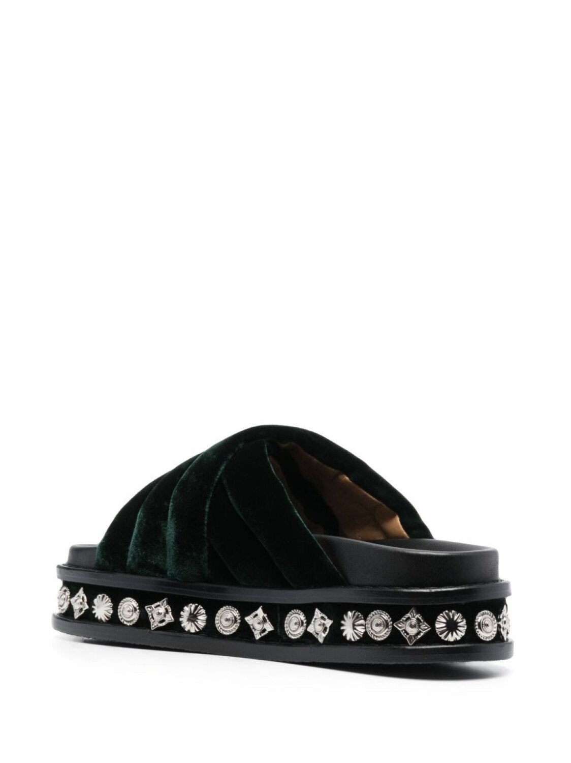 Toga Pulla бархатные шлепанцы с заклепками, зеленый