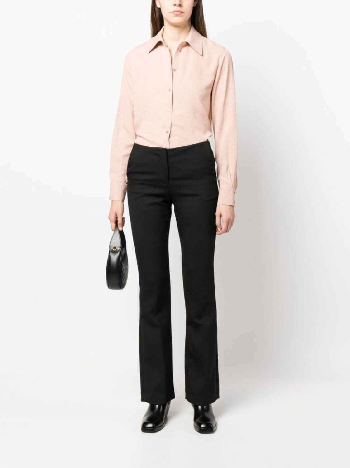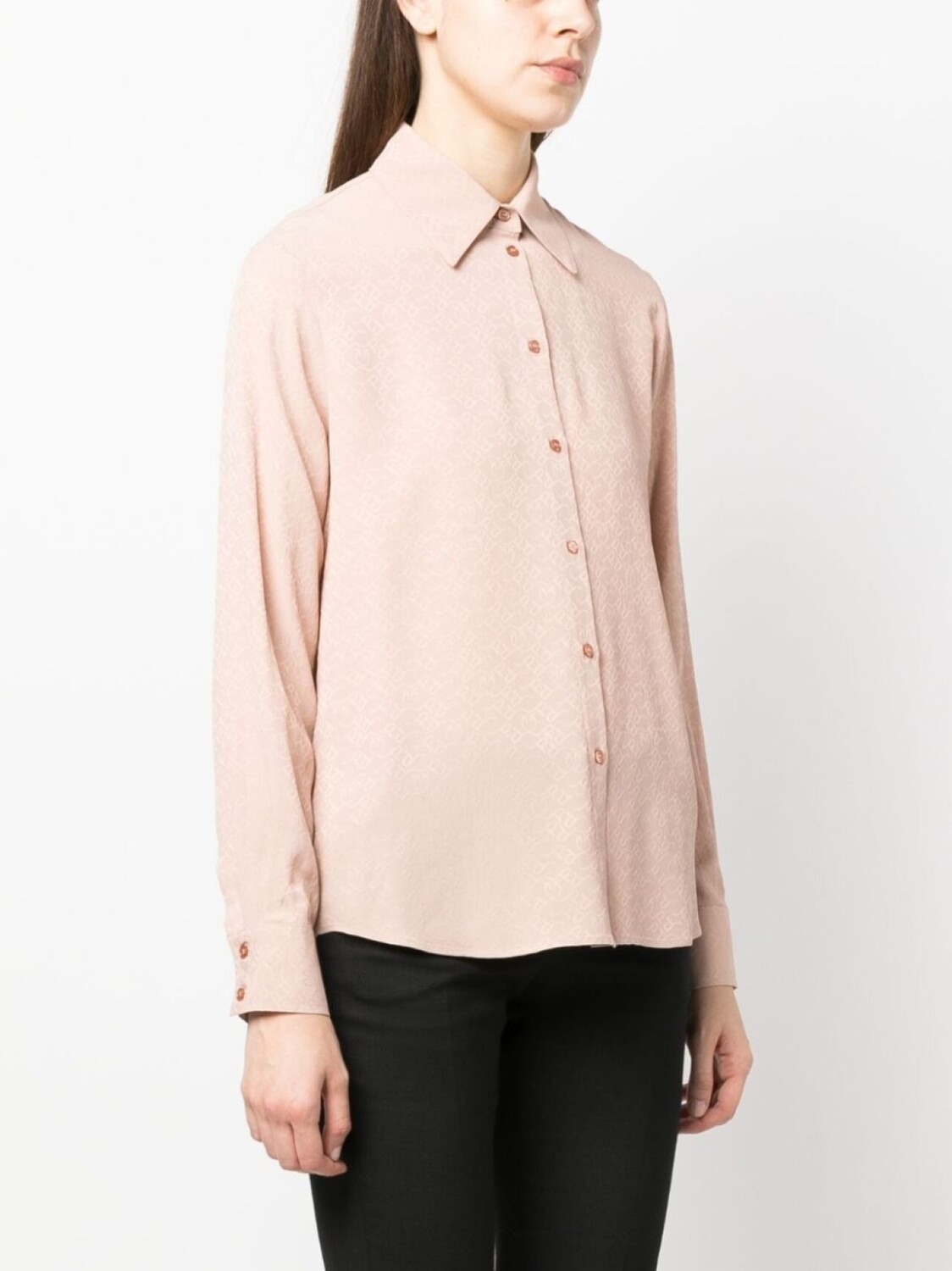 Светло-розовый, жаккард с монограммой, классический воротник, застежка на пуговицах спереди, длинные рукава, манжеты на пуговицах и прямой подол.