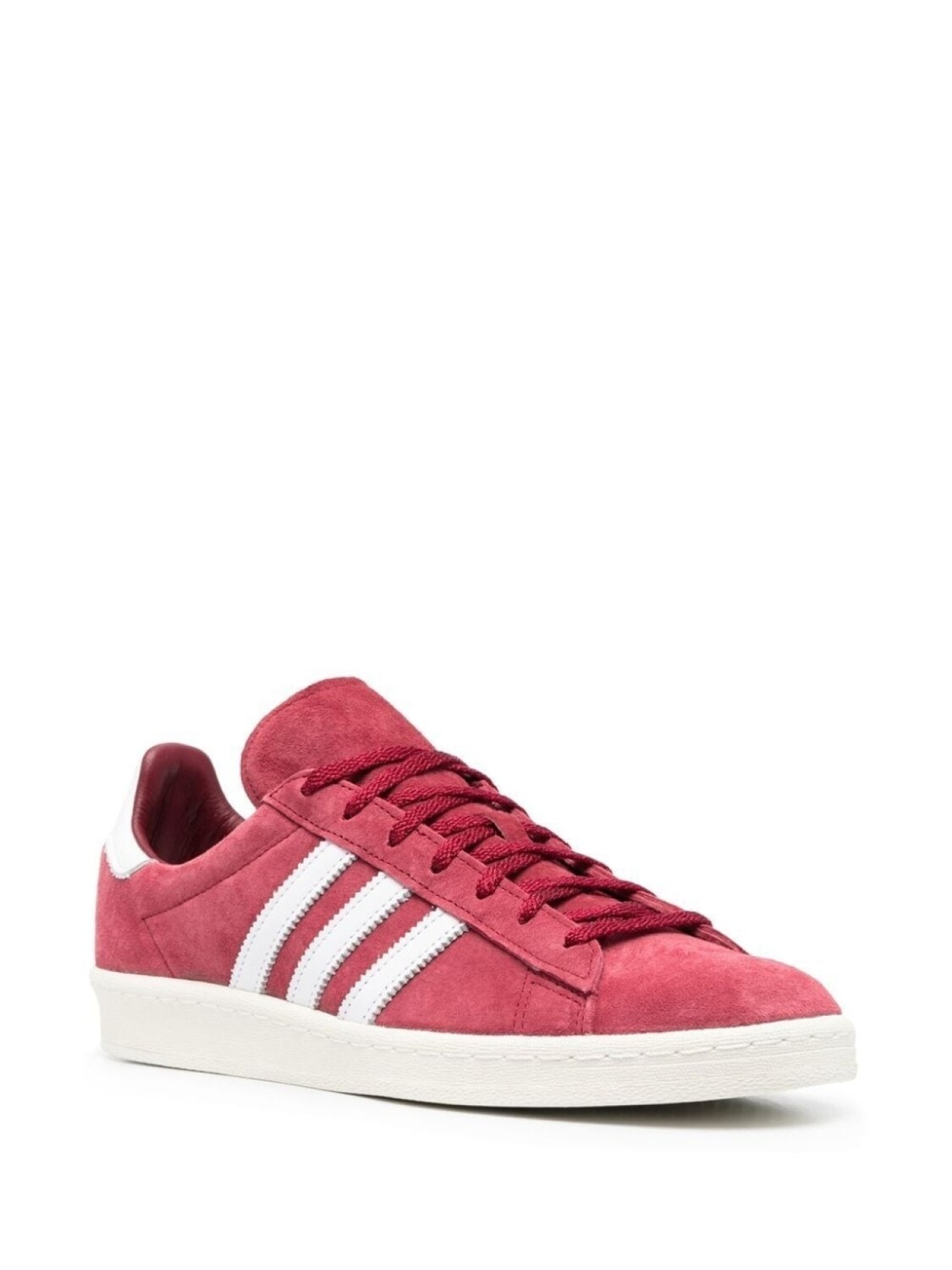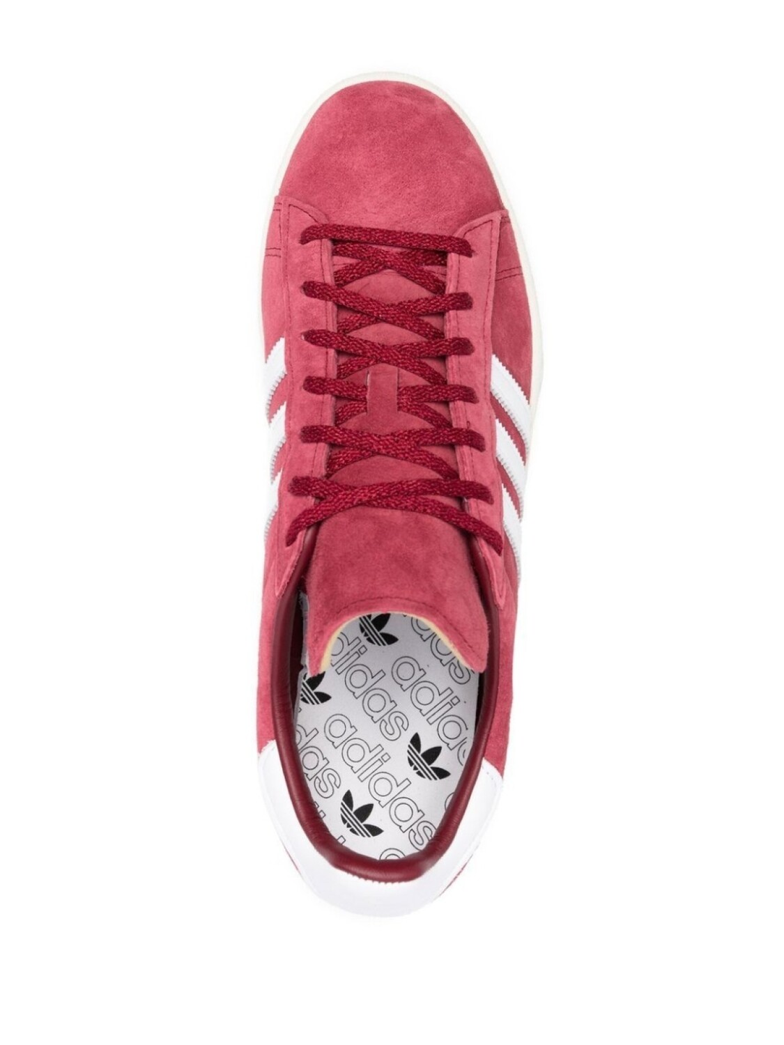 Бордовый, белый, нубук, знаковый логотип 3-Stripes, шнуровка спереди, закругленный носок, кожаная подкладка и резиновая подошва.