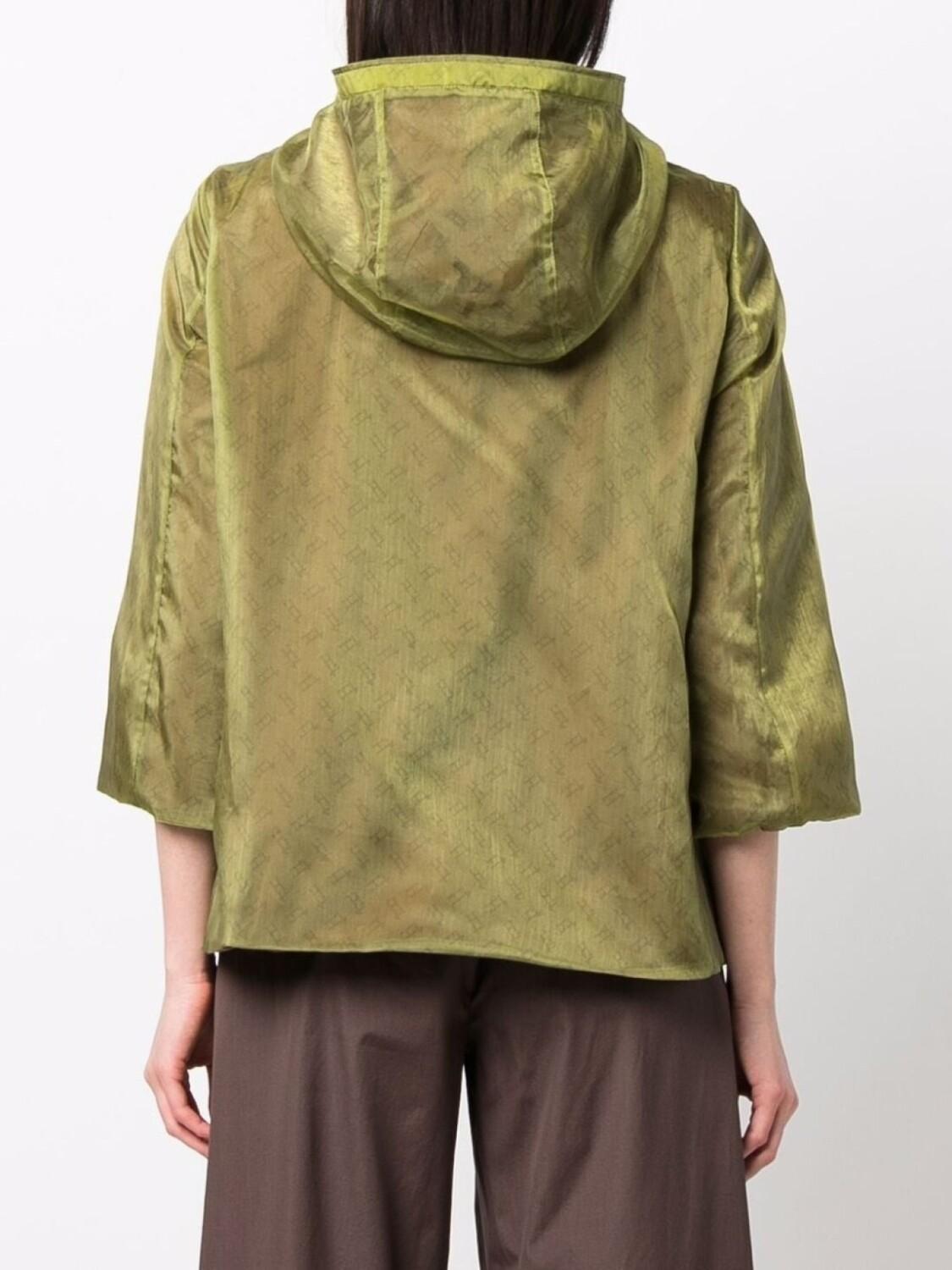 Двусторонний дизайн, затягивающийся на шнурок капюшон, застежка на молнии спереди, два кармана по бокам, рукава три четверти и прямой подол. Цвет: зеленый.