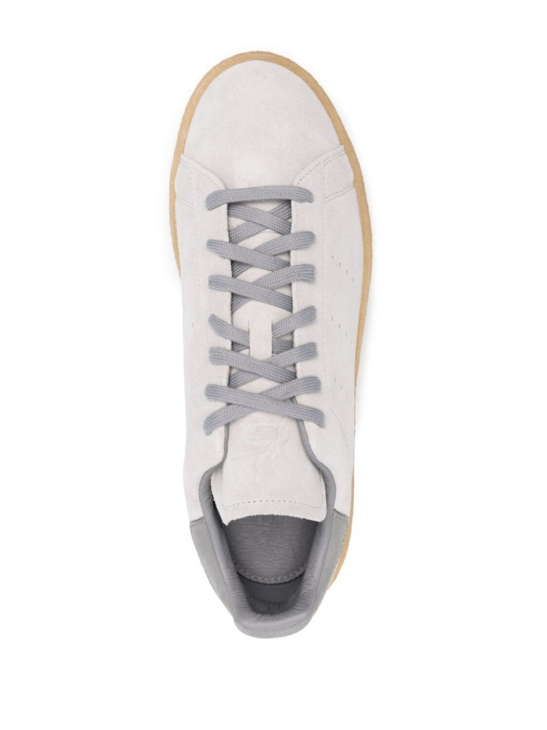 Серый, телячья кожа, искусственная замша, перфорация, строчка в тон, задник с логотипом, закругленный носок, шнуровка спереди и плоская резиновая подошва.