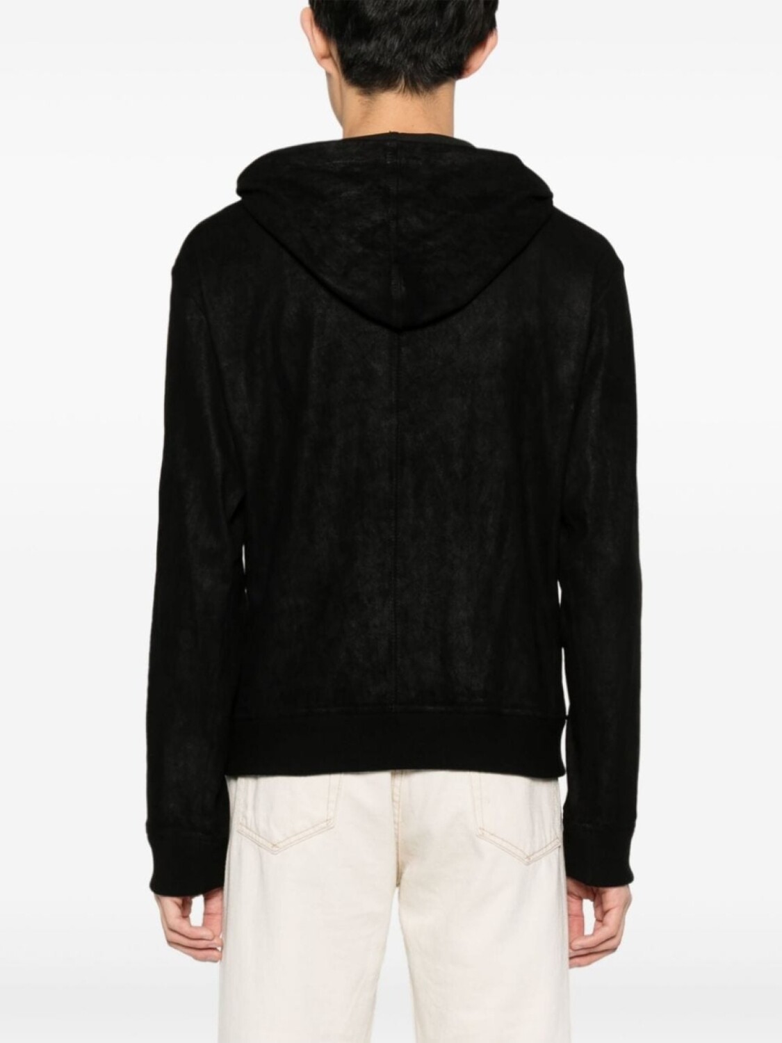 черный, замша, затягивающийся на шнурок капюшон, карманы на молнии спереди, длинные рукава, вязаные манжеты и подол, двусторонняя молния спереди