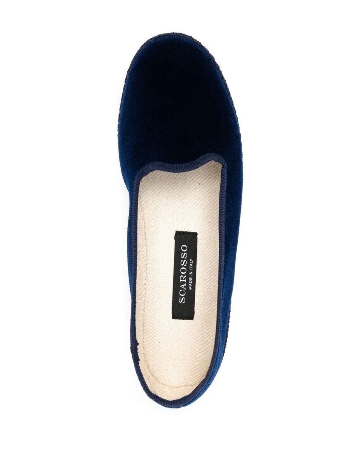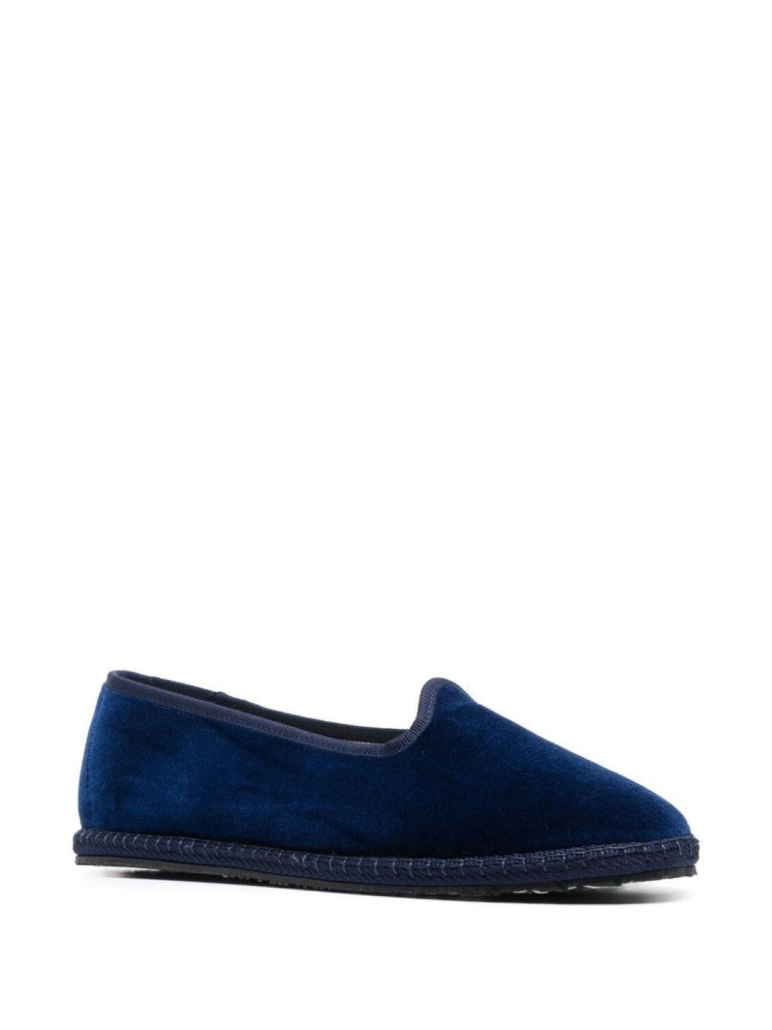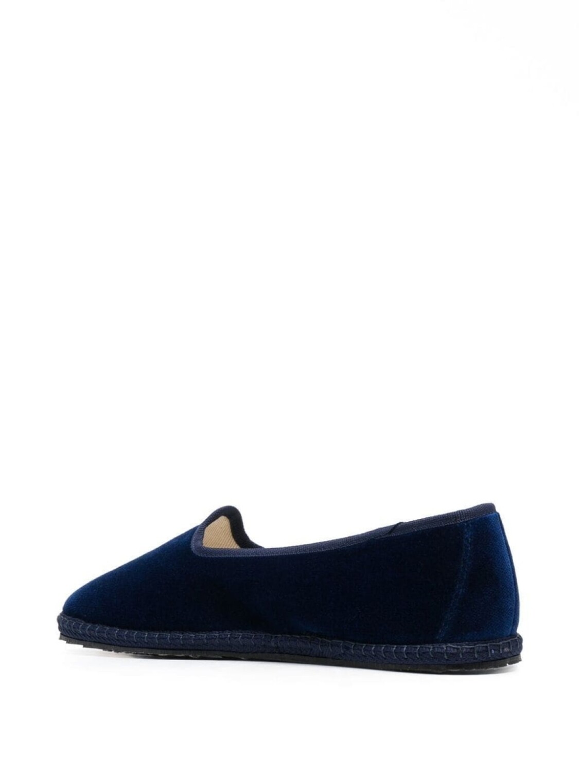 Темно-синий, закругленный носок, модель без застежки и плоская подошва.