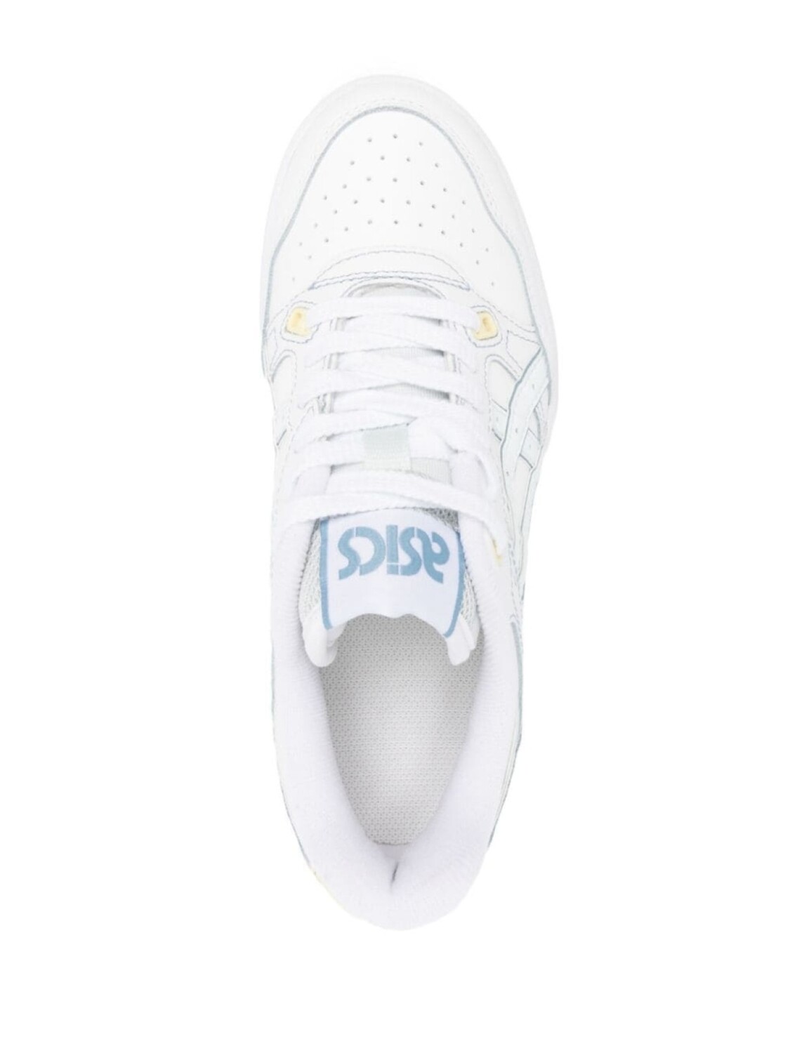белый/разноцветный, телячья кожа, гладкая текстура кожи, миндалевидный носок, перфорированный носок, нашивка с логотипом на язычке, контрастные вставки, логотип-аппликация, контрастный задник с логотипом, резиновая подошва, шнуровка спереди