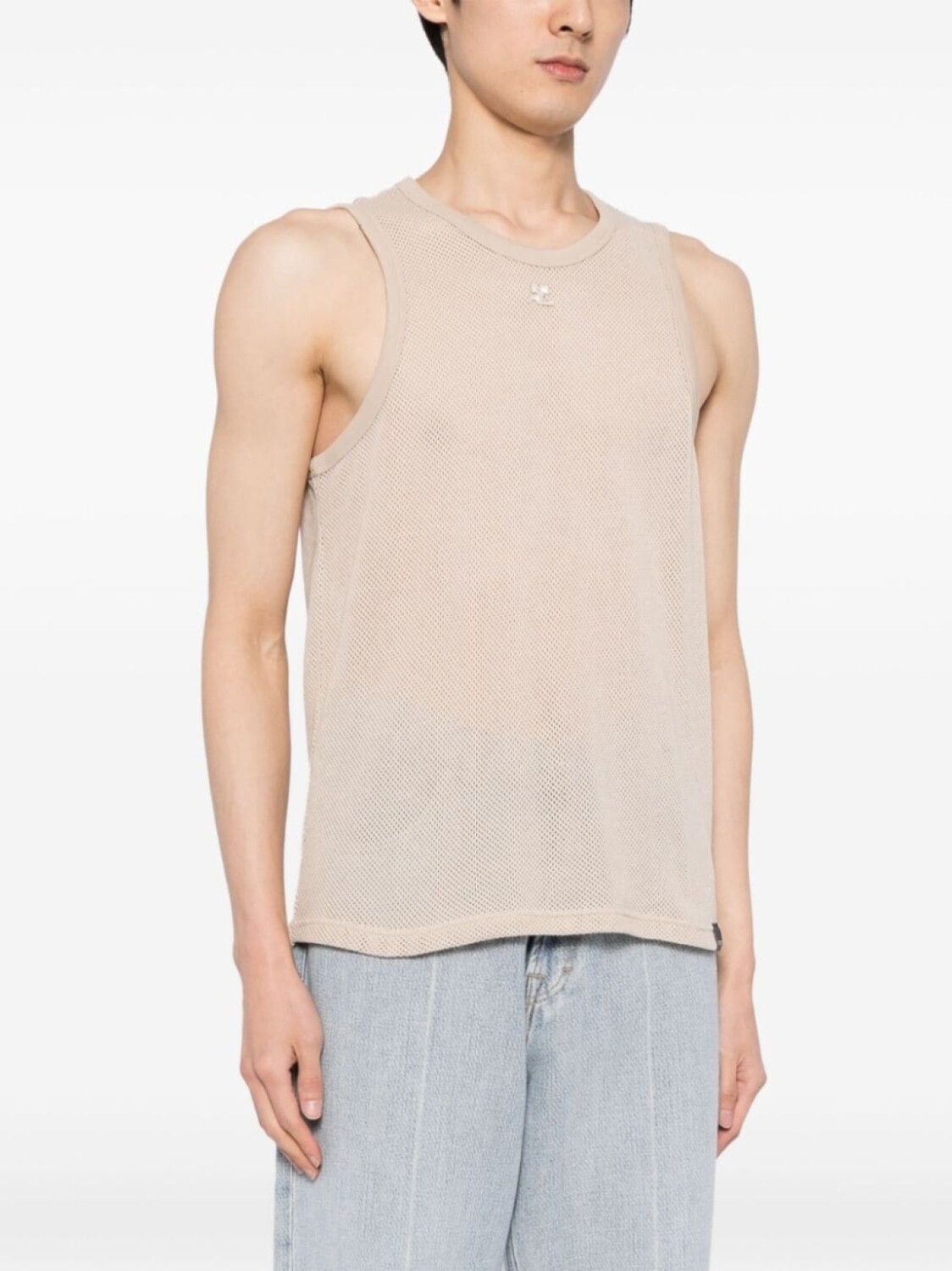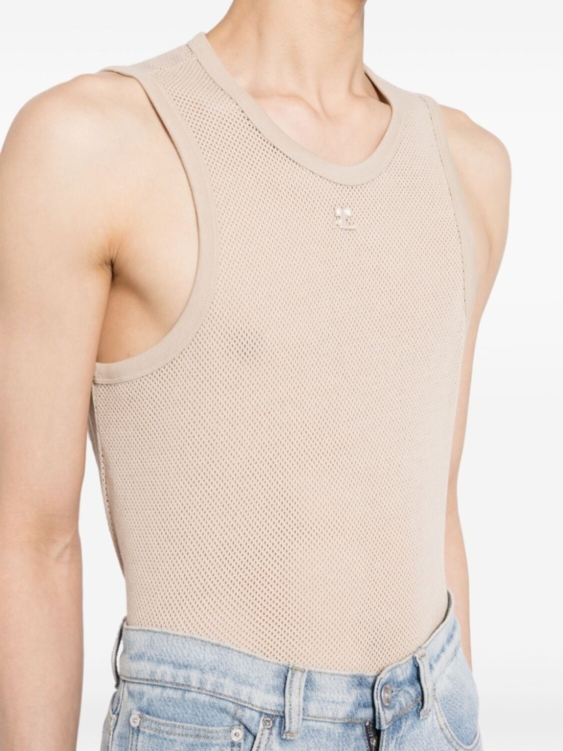 Courrèges сетчатый топ с вышитым логотипом, нейтральный цвет