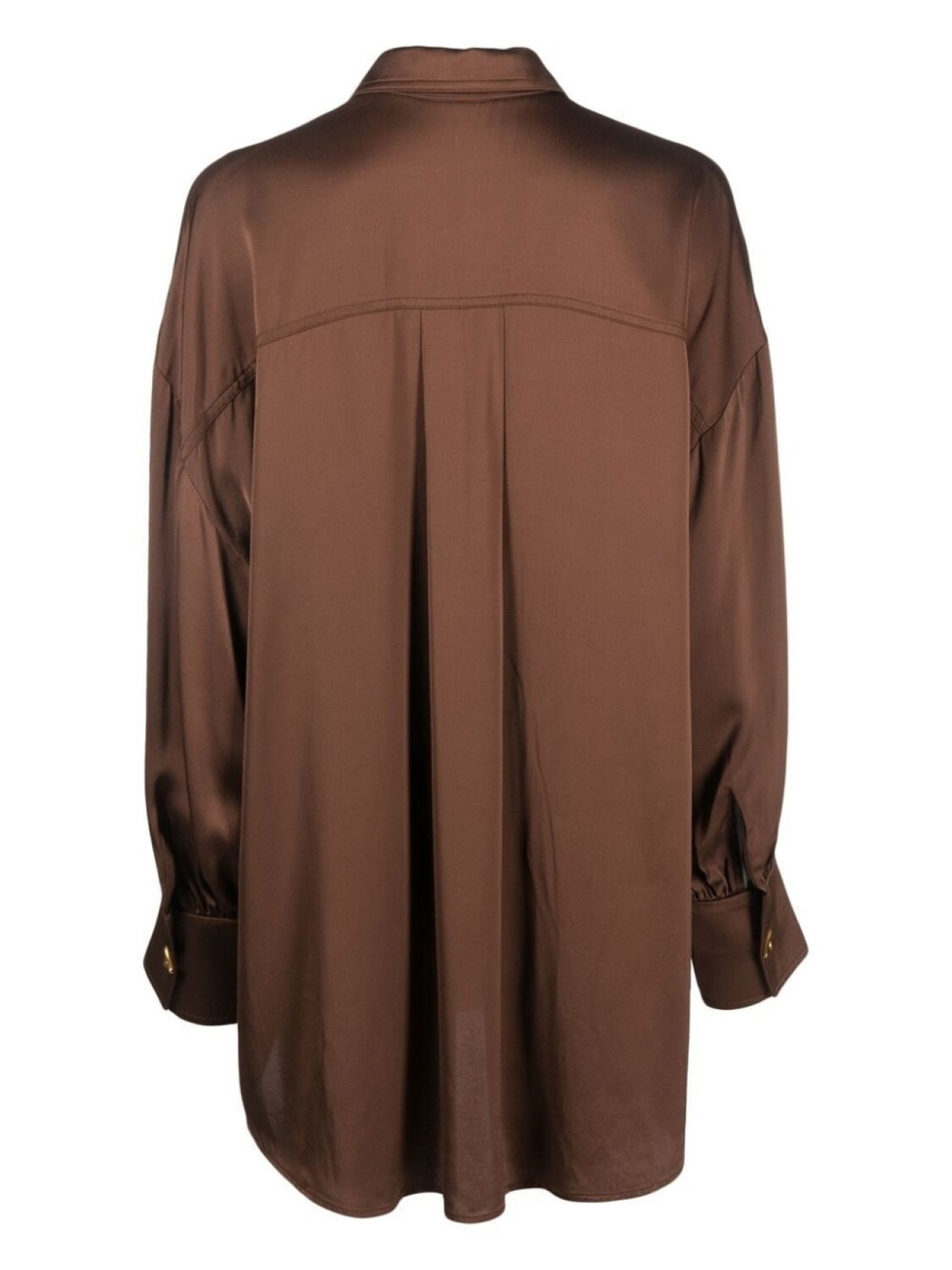Подробнее о товаре: Шоколадный, сатиновая фактура, классический воротник, потайная застежка спереди, приспущенные плечи, длинные рукава, манжеты на пуговицах и закругленный подол. Этот товар как минимум на 50% состоит из сертифицированной древесины. Это гарантирует, что сырье заготовлено в ответственных лесных хозяйствах, которые минимизируют вырубку лесов, обеспечивают справедливую заработную плату и условия труда, сохраняют биоразнообразие и уважают права локальных сообществ. Узнать больше о том, какие товары получают отметку «Ответственный выбор», можно из материала «Как мы оцениваем экологичность и этичность».