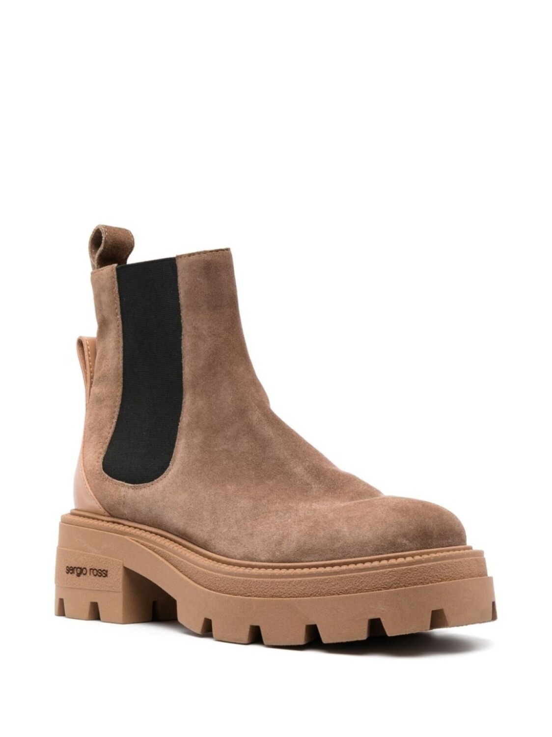 Нежно-коричневый, черный, телячья кожа, замша из телячьей кожи, эластичные боковые вставки, логотип сбоку, петля для подтягивания сзади, квадратный носок, модель без застежки, низкий блочный каблук и рифленая резиновая подошва. Срок изготовления обуви Sergio Rossi, выполненной на заказ, составляет 5 недель. Обратите внимание, что кастомизированные вещи не подлежат возврату и обмену.