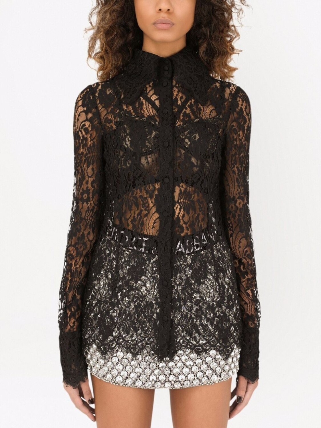Dolce & Gabbana полупрозрачная кружевная рубашка, черный