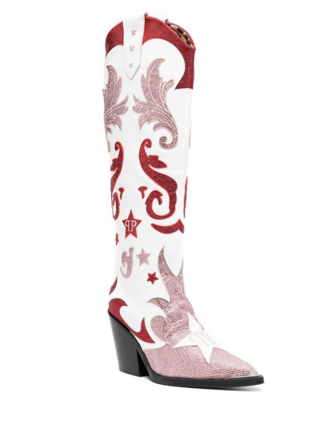 Philipp Plein ботильоны Cowboy 100 со стразами, белый