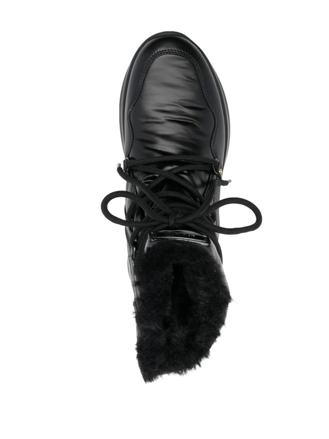 Черный, подкладка из искусственного меха, логотип сбоку, нашивка с логотипом на язычке, шнуровка спереди, застежка на молнии сбоку, массивная резиновая подошва и высота по щиколотку.