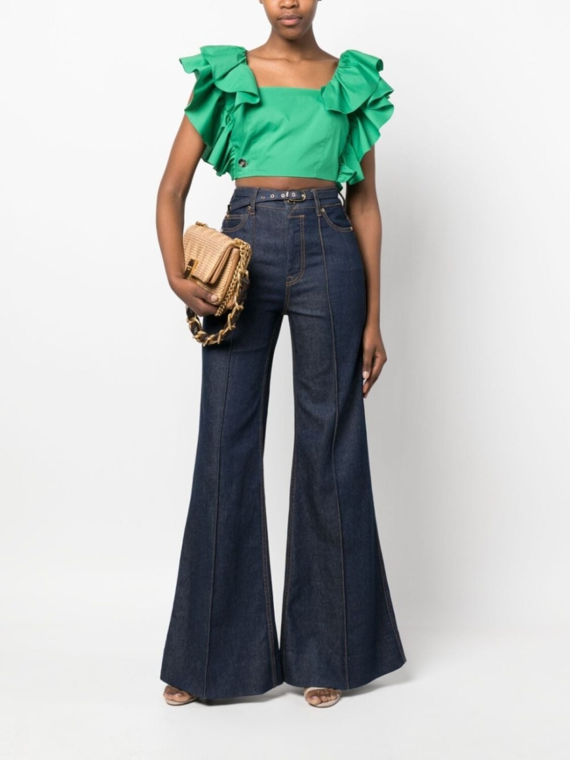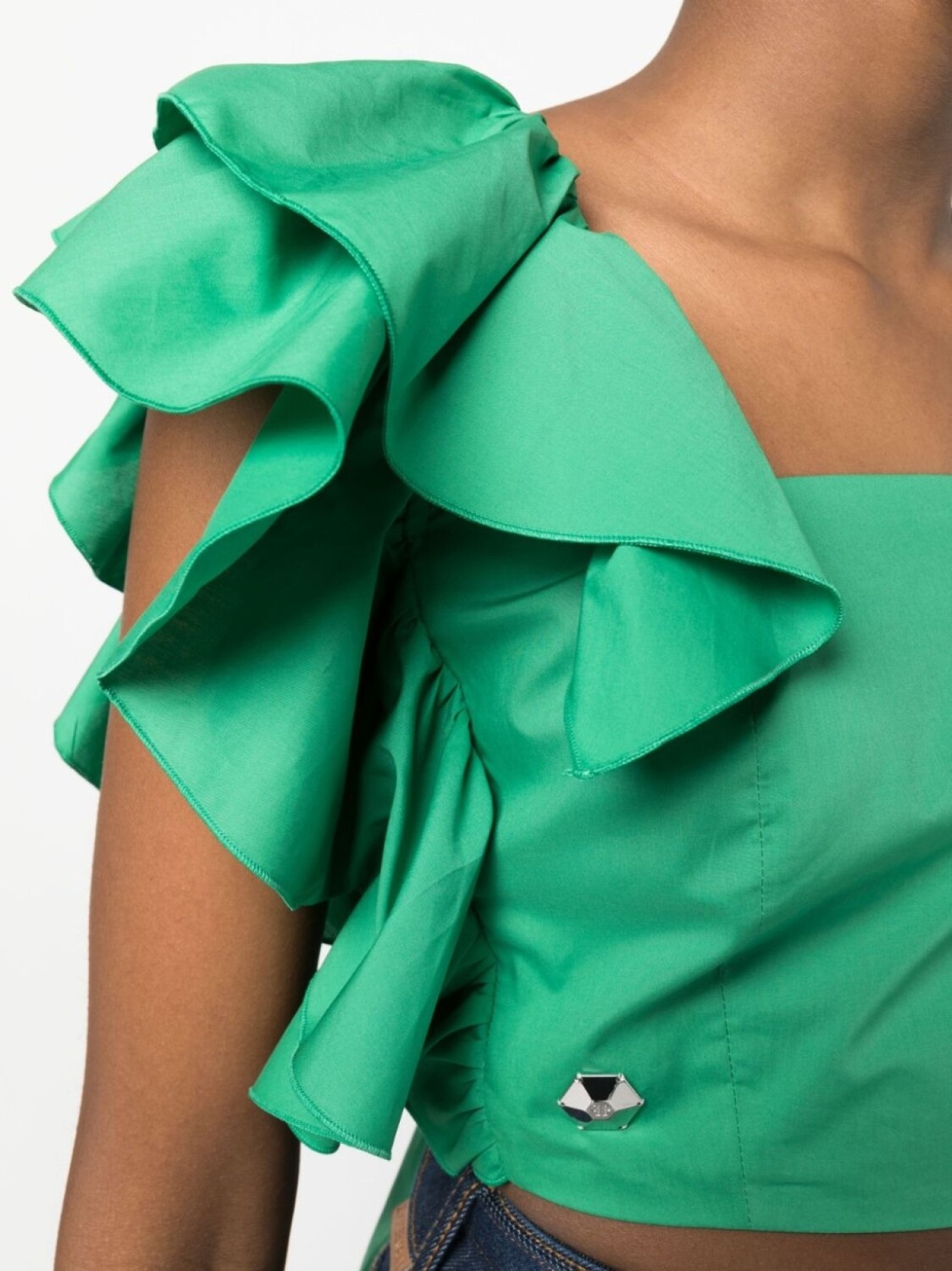 Philipp Plein укороченный топ Volant с оборками, зеленый