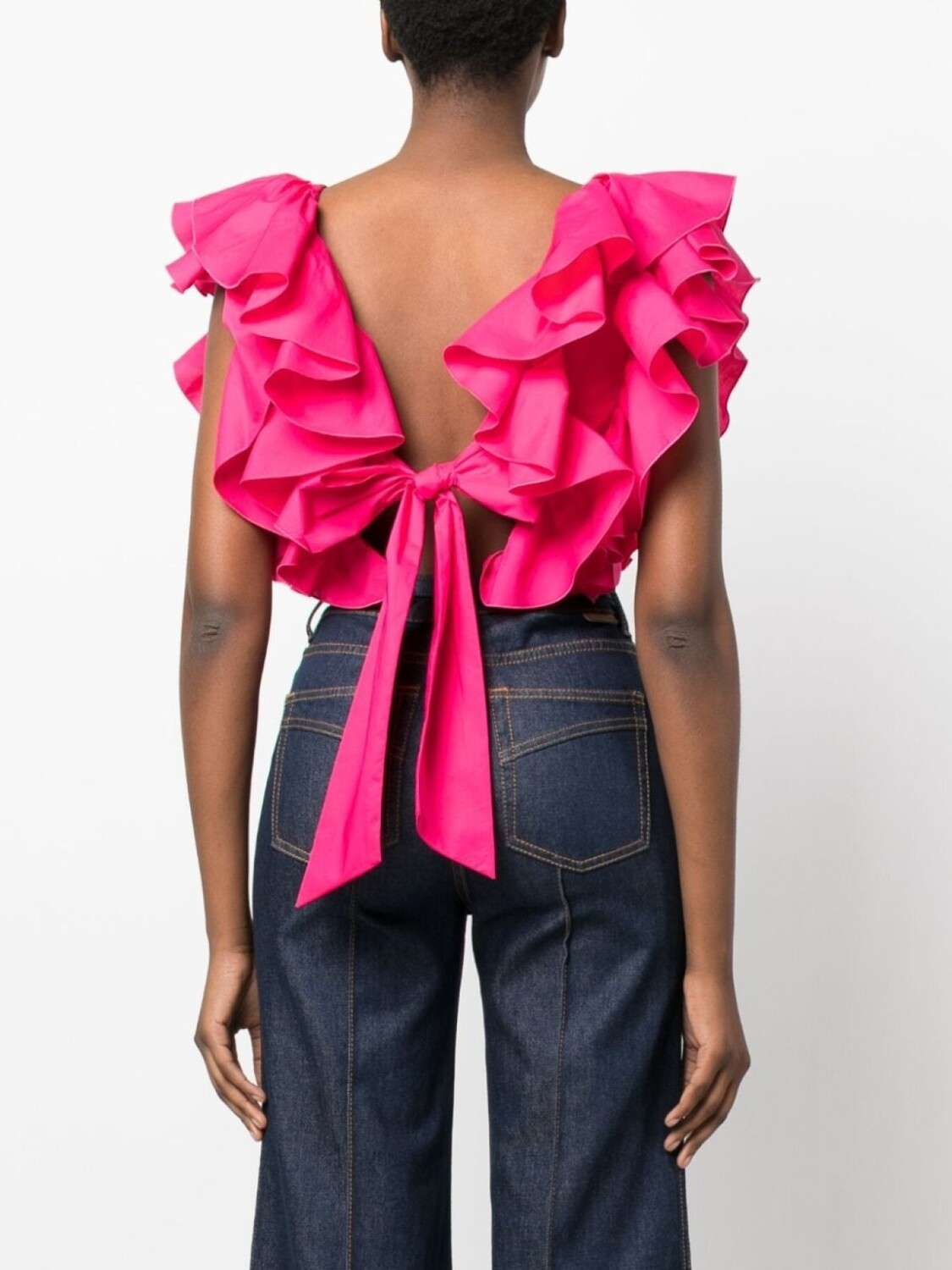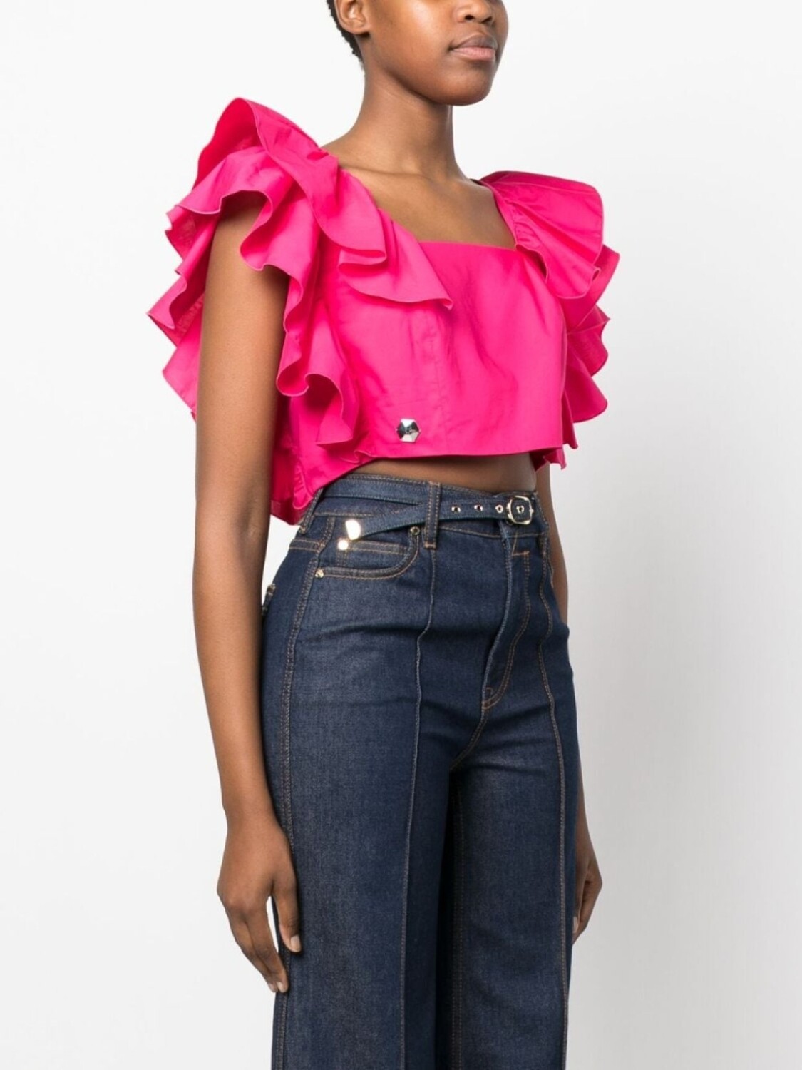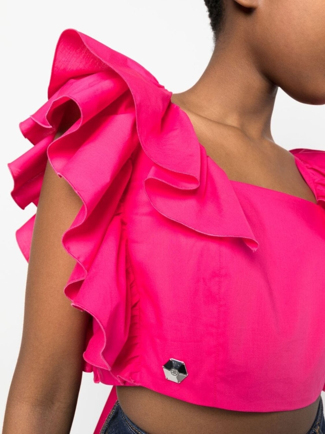 Philipp Plein укороченный топ Volant с оборками, розовый