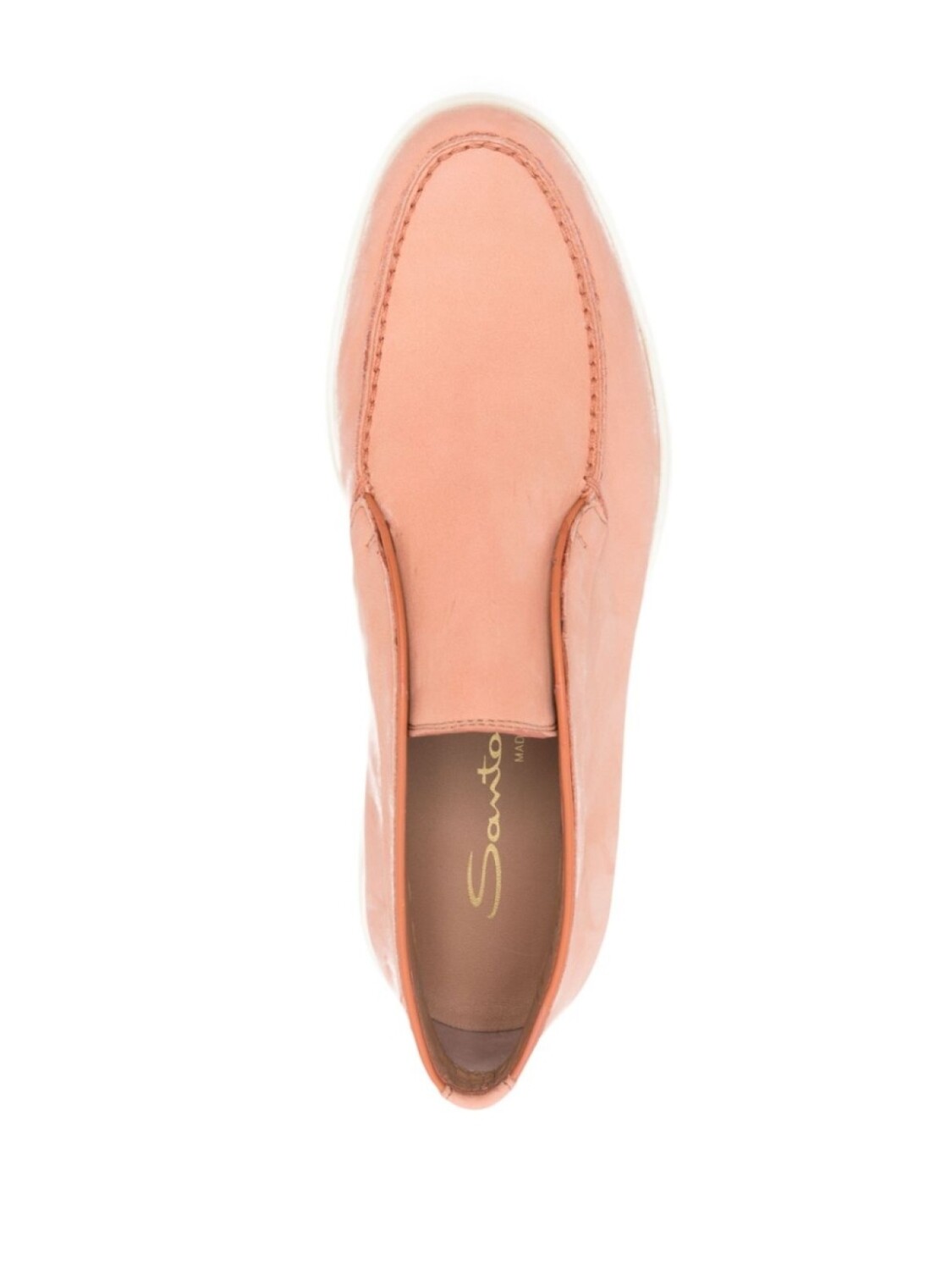 Светло-оранжевый, телячья кожа, строчка в тон, миндалевидный носок, модель без застежки, высота по щиколотку, кожаная стелька с логотипом и плоская резиновая подошва.
