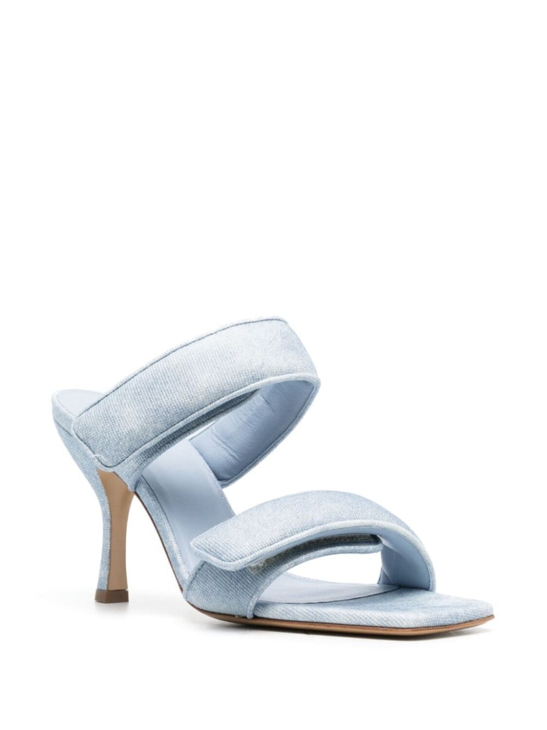 Голубой, открытый носок, квадратный носок, застежка на липучке спереди, модель без застежки, высокий каблук и кожаная стелька с логотипом.