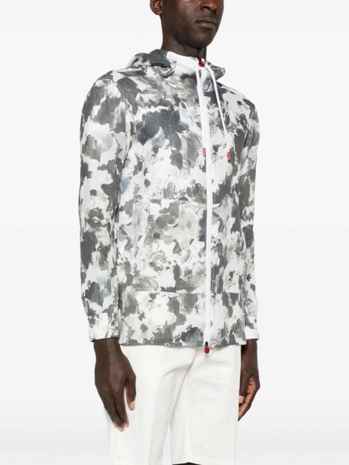 Kiton льняная куртка с абстрактным принтом, серый