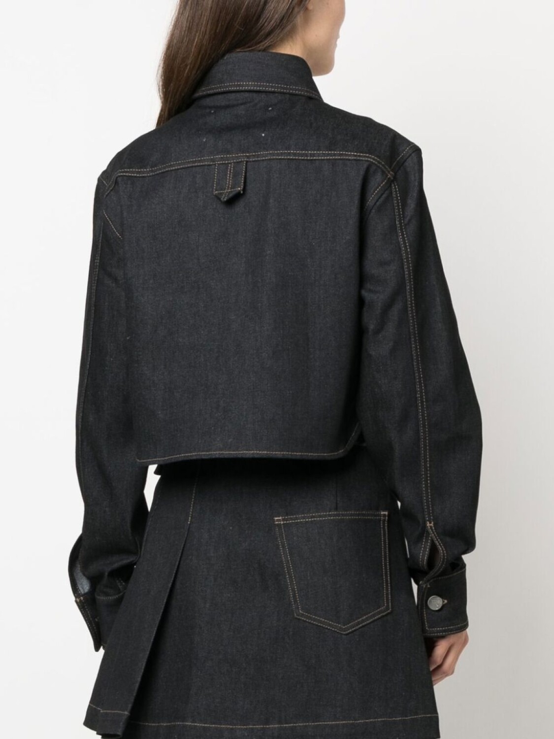 Черный, органический хлопок, классический воротник, застежка на пуговицах спереди, длинные рукава, манжеты на пуговицах и укороченная длина. Ответственный выбор: