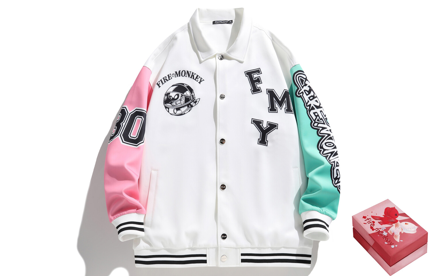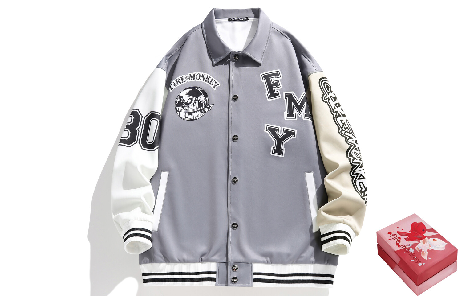 Fire Monkey Бейсбольная куртка унисекс FireMonkey, Черный (утолщение стежки)