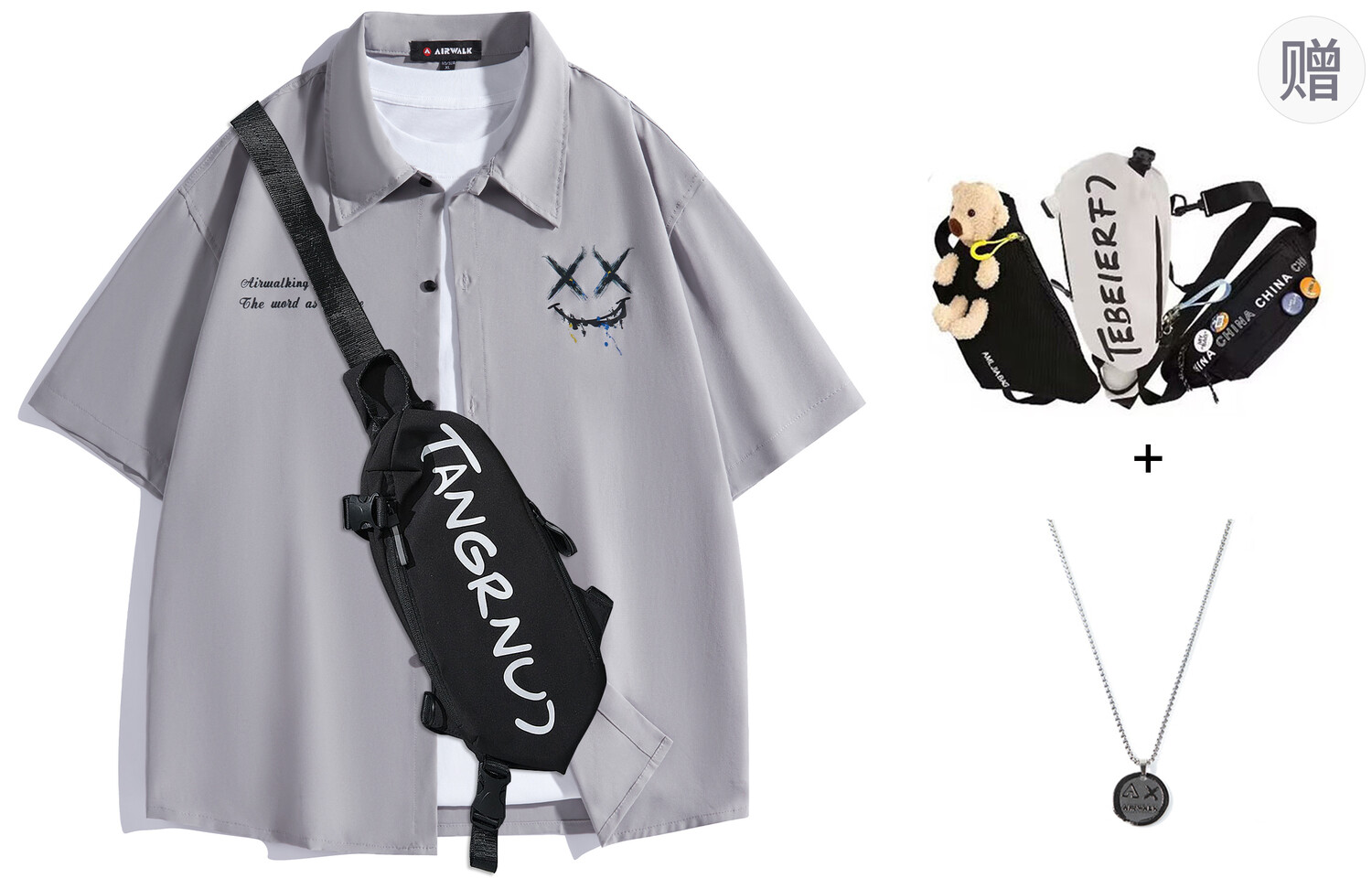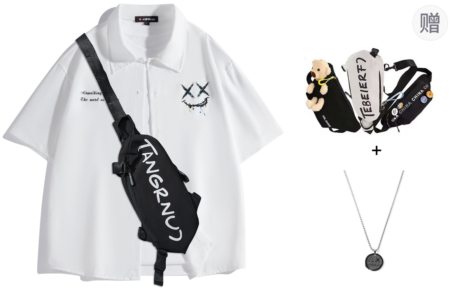 Рубашка унисекс Airwalk, Черный (в комплекте сумка через плечо и ожерелье) 2 905₽