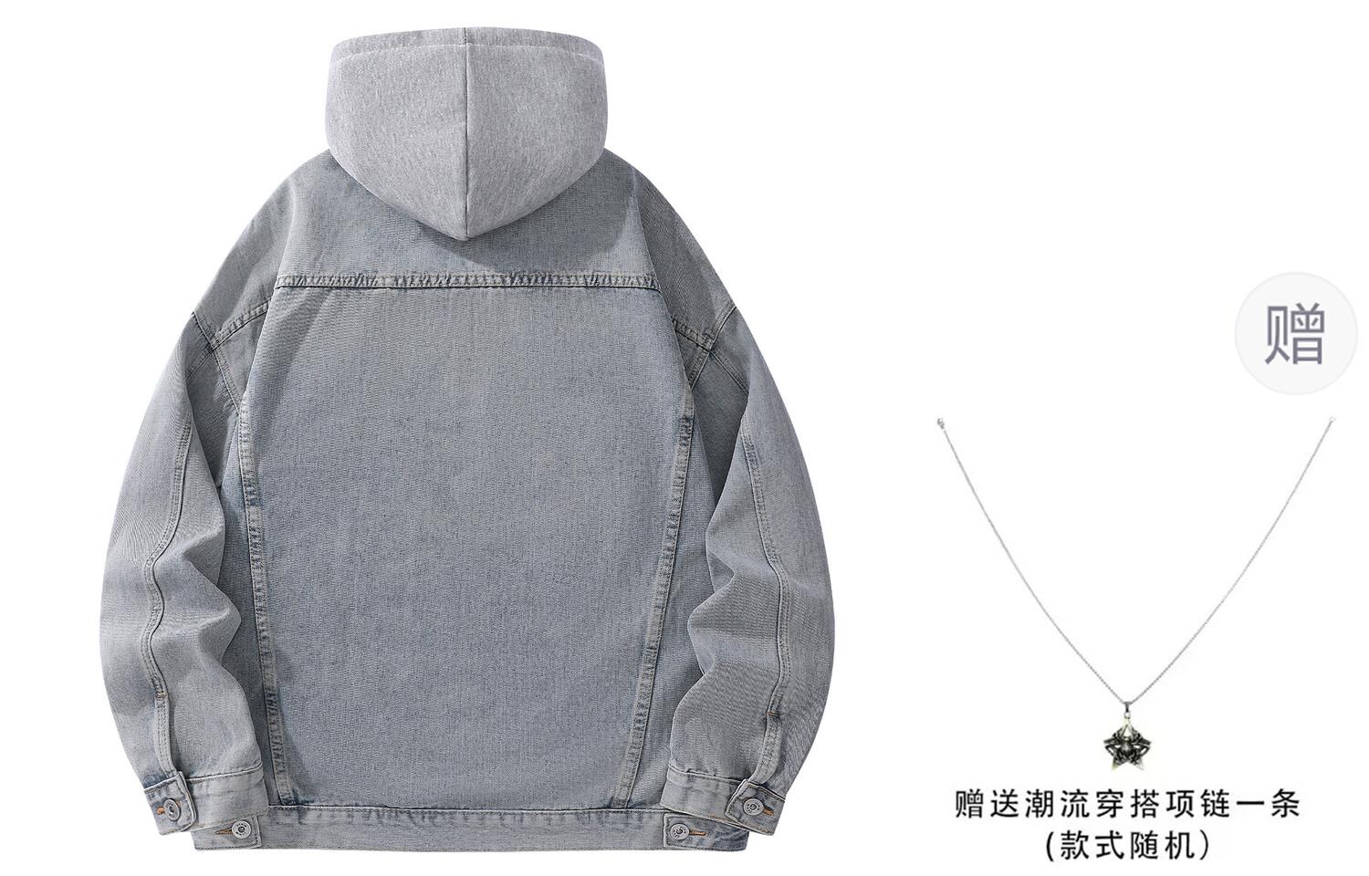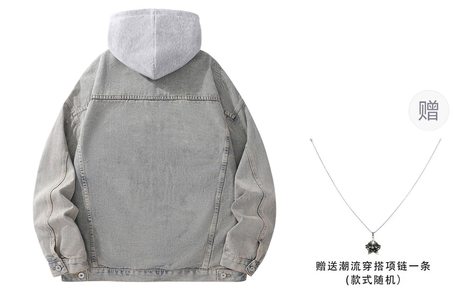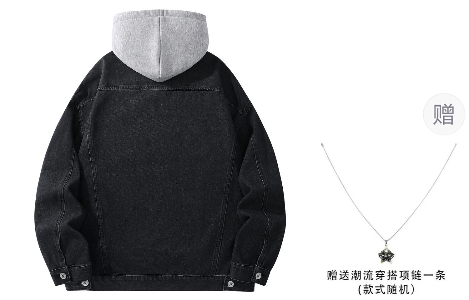 Джинсовая куртка унисекс La'T.Weekend, Черный капюшон (подарочное ожерелье)