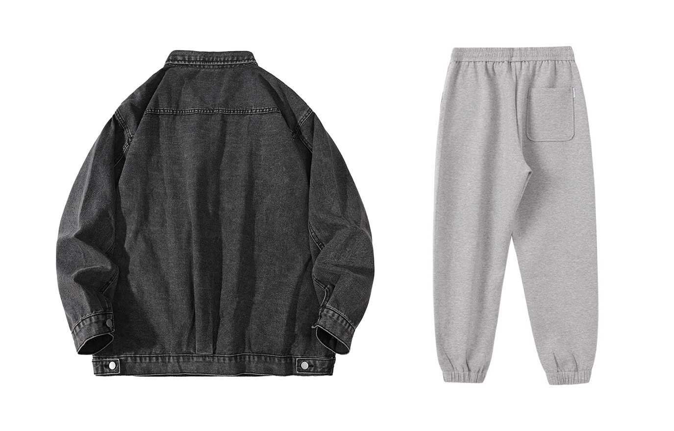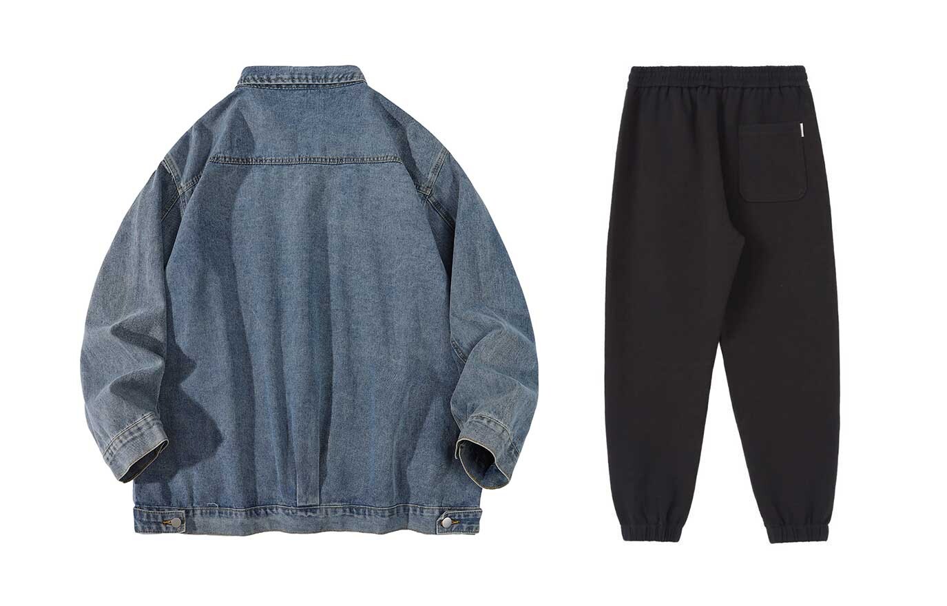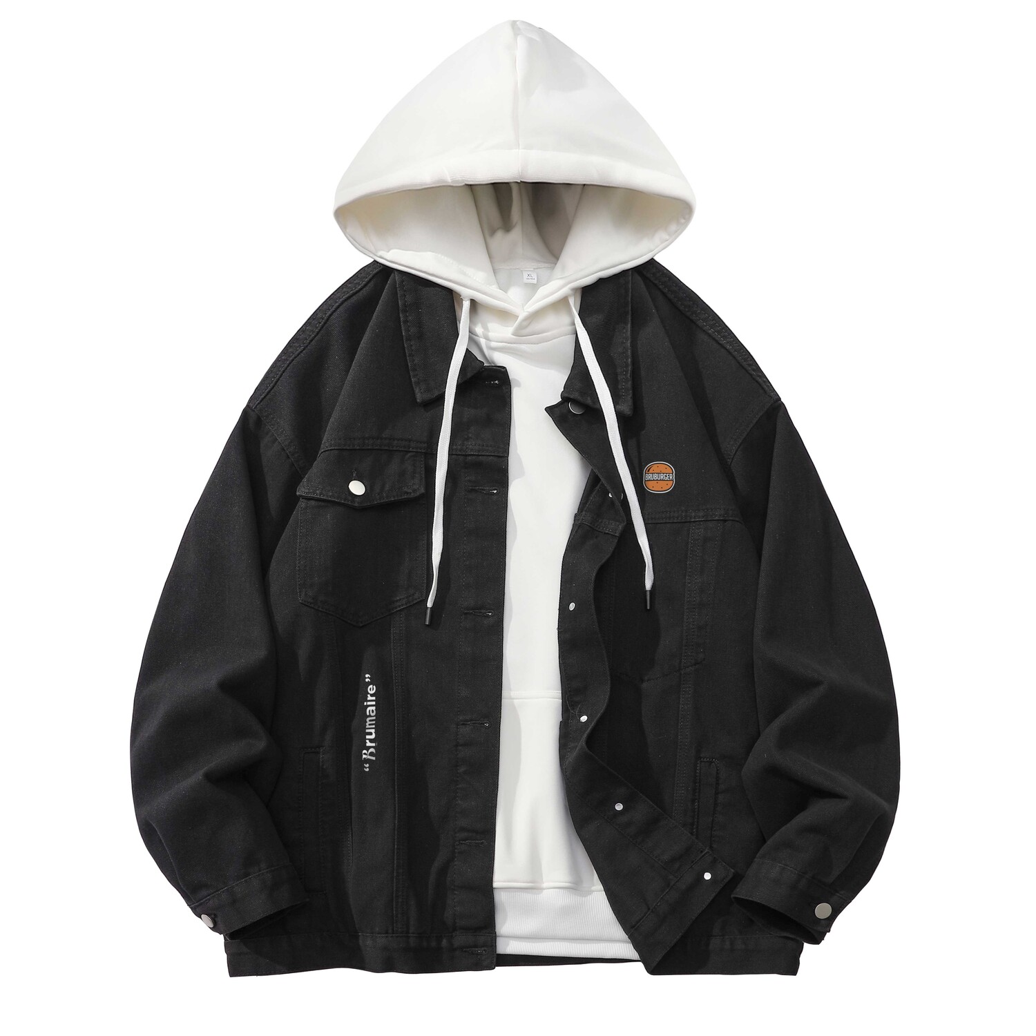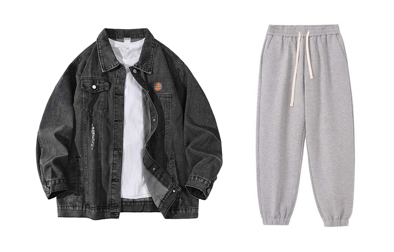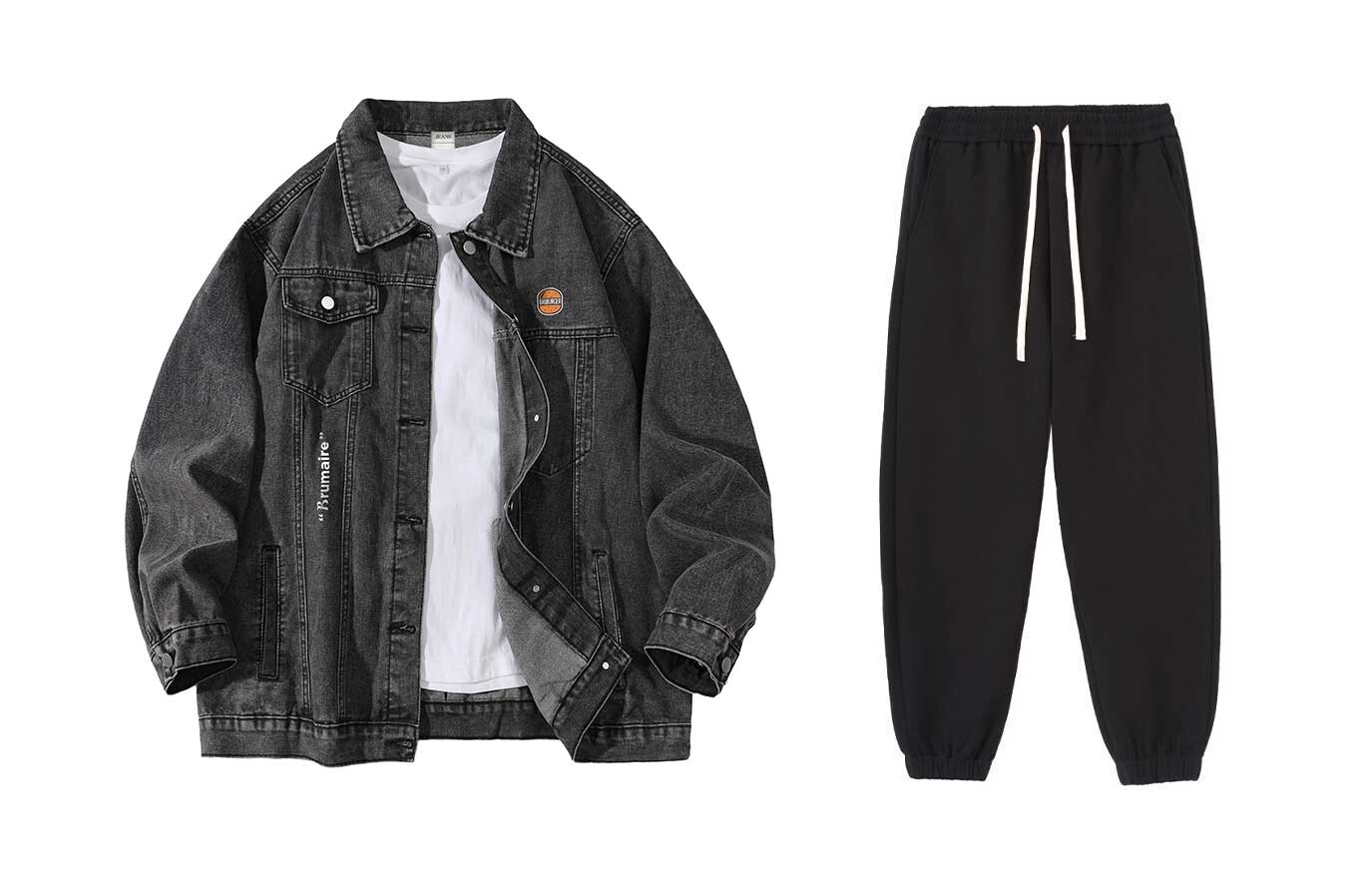 Джинсовая куртка унисекс BRUMAIRE, Черная куртка и черные брюки