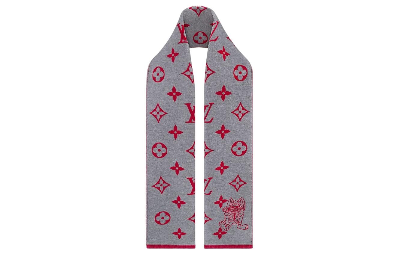 Мужской вязаный шарф Louis Vuitton, розовый/серый
