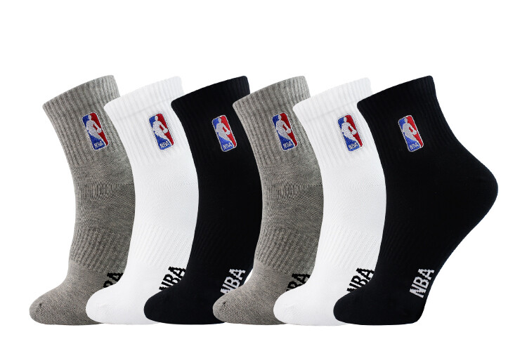 Носки унисекс до середины икры NBA, 6 двойных (2 белых + 2 черных + 2 серых)