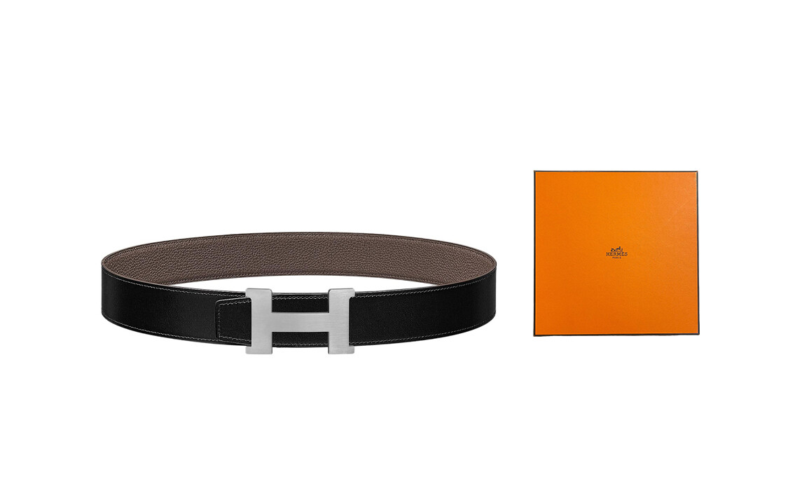 Hermes Мужской кожаный ремень Constance, Черный/оловянно-серый