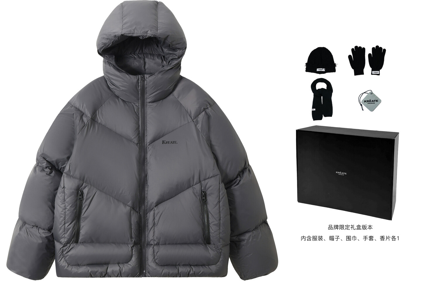 Пуховик унисекс KREATE, Серый