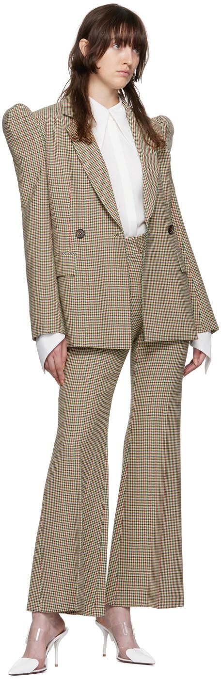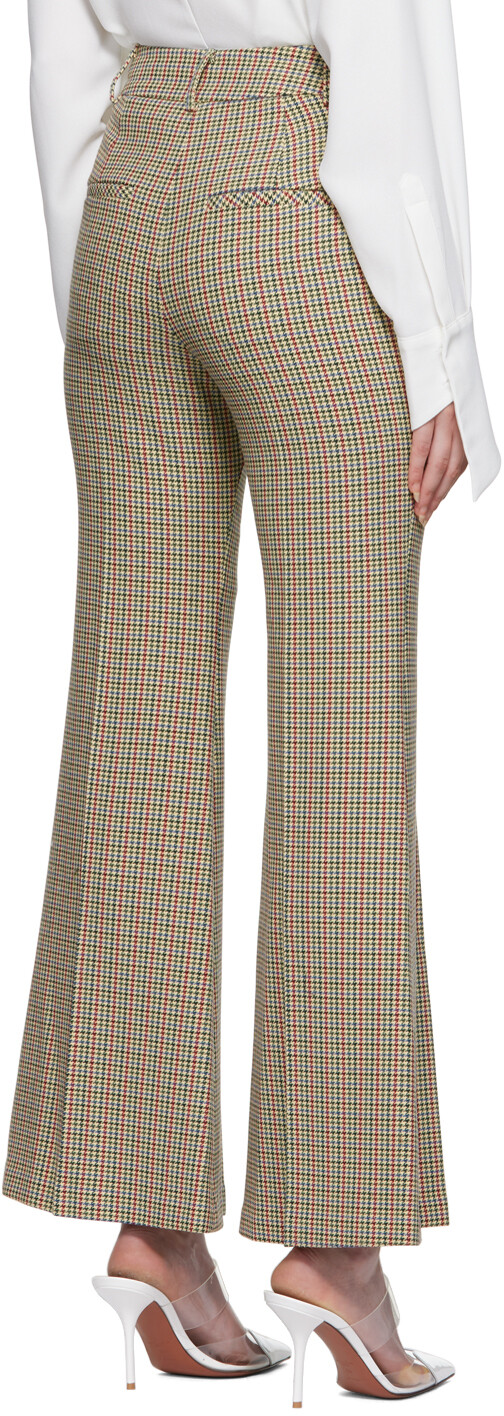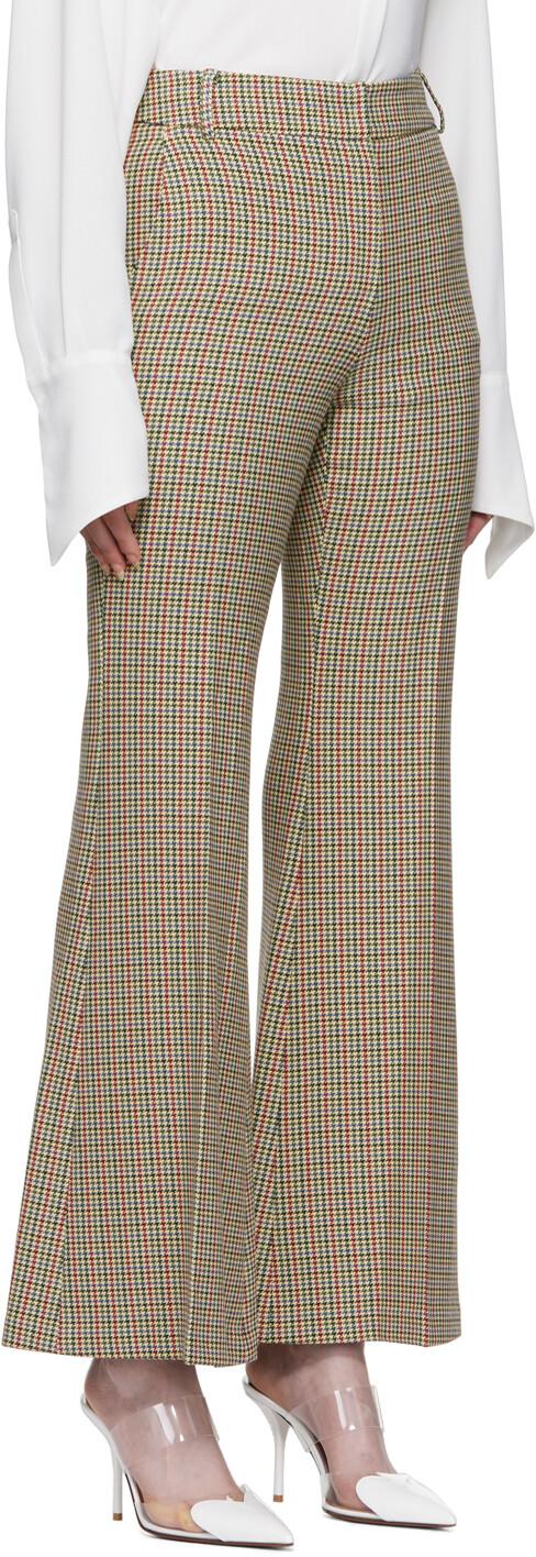 Расклешенные брюки из эластичного твида из полиэстера и вискозы. Узор «гусиная лапка» повсюду.