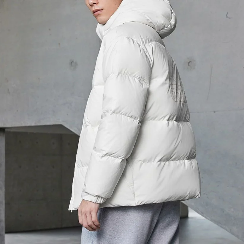 Утеплённая куртка в объёмном (puffy) силуэте из линейки Daily Down. Закрытый воротник, длинные рукава и манжеты помогают лучше сохранять тепло и защищают от ветра. Универсальный белый цвет подходит к спортивным и повседневным образам.