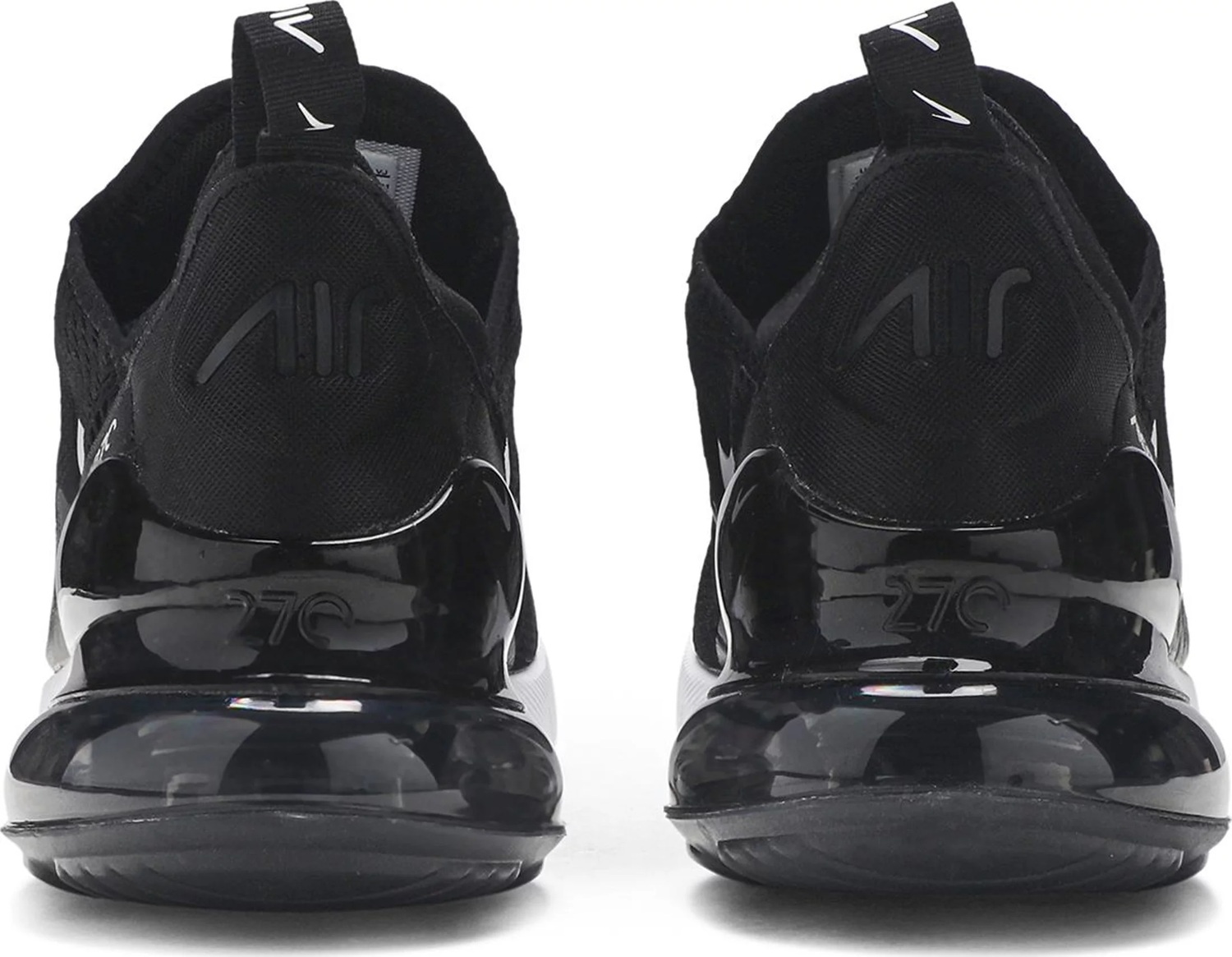 Вдохновленные Air Max 180, Air Max 270 представлены в эксклюзивном предложении для женщин, в котором сочетается эстетика классической обуви для повседневной жизни с конструкцией из белой сетки. Обувь, напоминающая носок, поддерживается серыми замшевыми накладками, а увеличенная вставка Air Max в пятке обеспечивает амортизацию.
