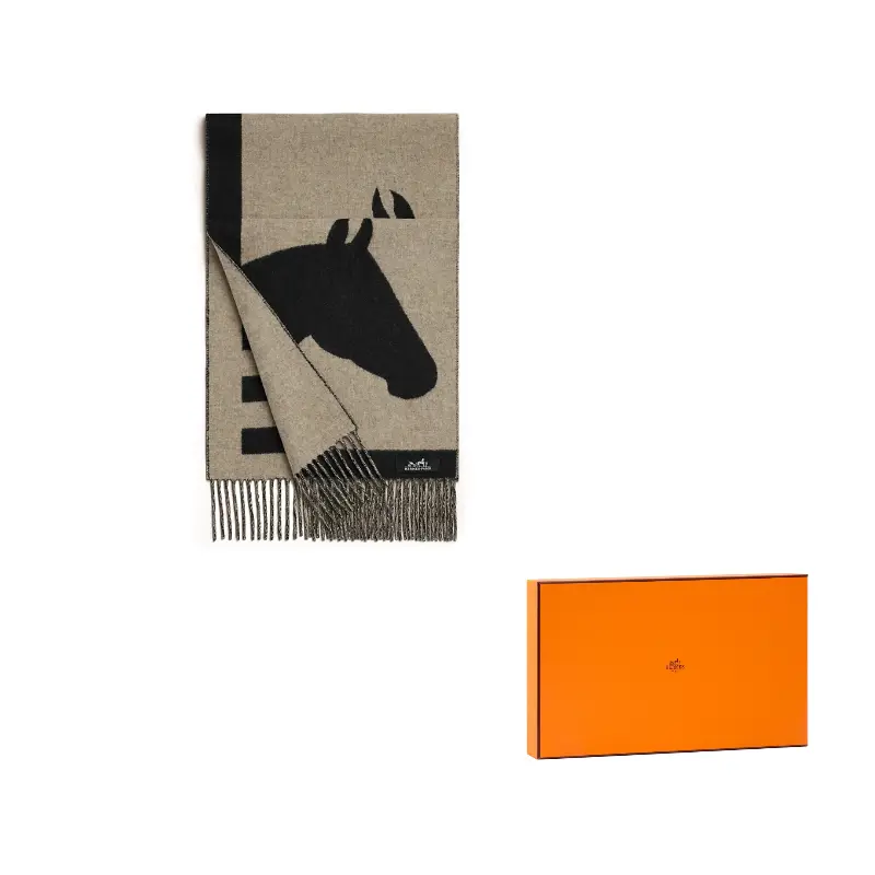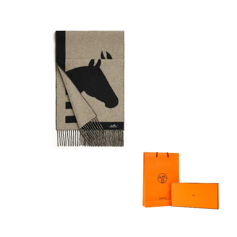 Вязаный шарф унисекс Hermes, черный/бежевый