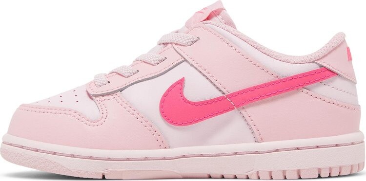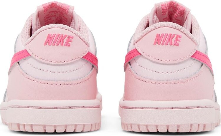 Кроссовки Nike Dunk Low выполнены полностью из кожи с более светлыми и темными оттенками розового цвета по всему верху. Оттенок Hyper Pink используется на логотипах Swoosh и фирменных зонах. Розовая тема продолжается на резиновой подошве, завершая дизайн.